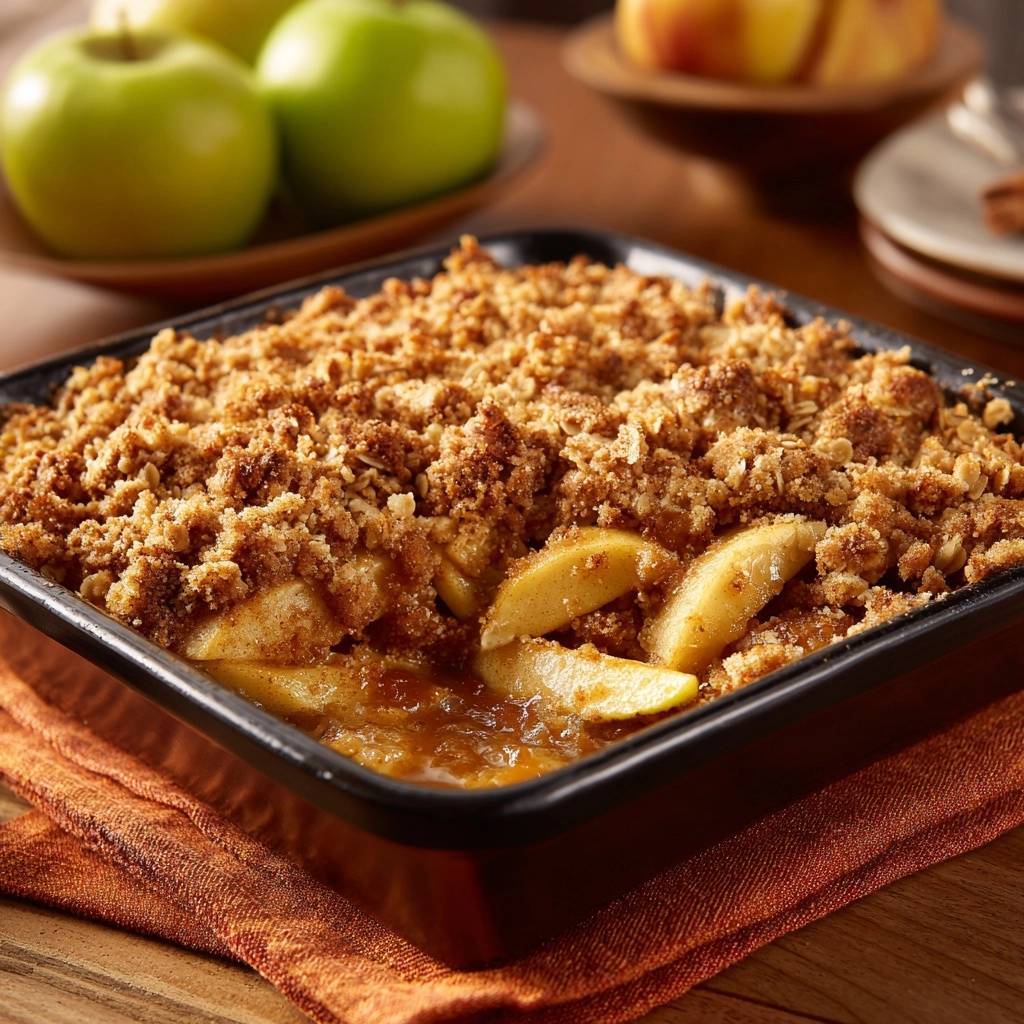 Stell dir vor, du nimmst den ersten Bissen von deinem Apfel-Crumble. Die Streusel knacken goldknusprig zwischen den Zähnen, darunter wartet saftige, säuerliche Apfelfüllung, die perfekt gebunden ist. Kein Matsch, kein Saft, der alles durchweicht. Das ist der Apfel-Crumble, wie er sein soll.