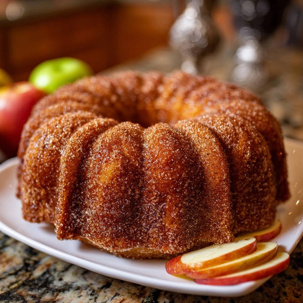 - Teig in die vorbereitete Form füllen und glatt streichen. 45-50 Minuten backen, bis ein Zahnstocher sauber herauskommt. Form 10 Minuten abkühlen lassen – der Zimt-Zucker-Trick wirkt jetzt: Kuchen auf Gitter stürzen, er gleitet perfekt heraus!