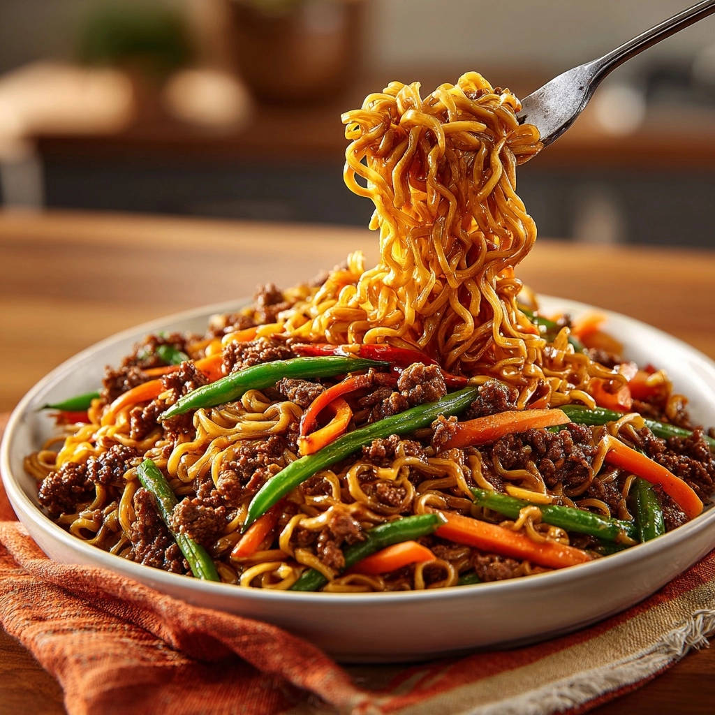 Asiatische Nudelpfanne mit Rinderhack und knackigem Gemüse