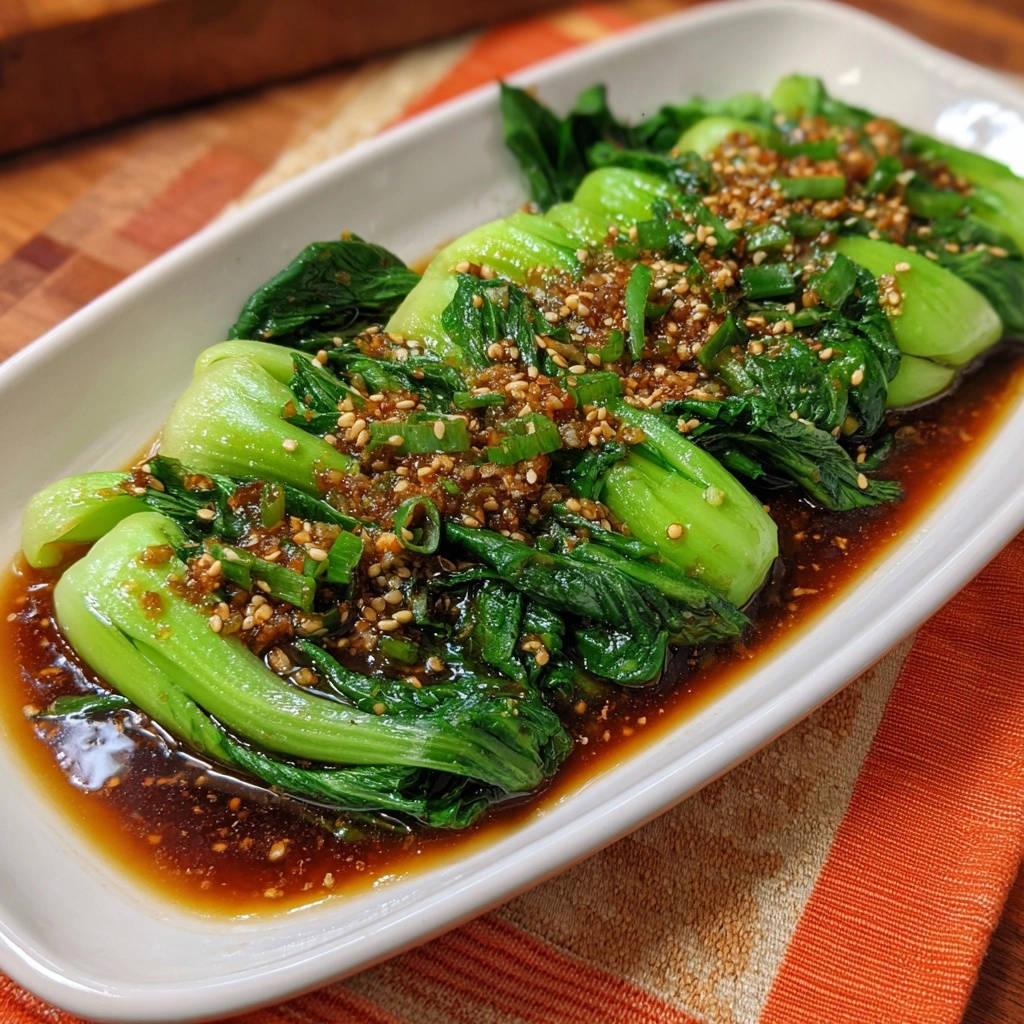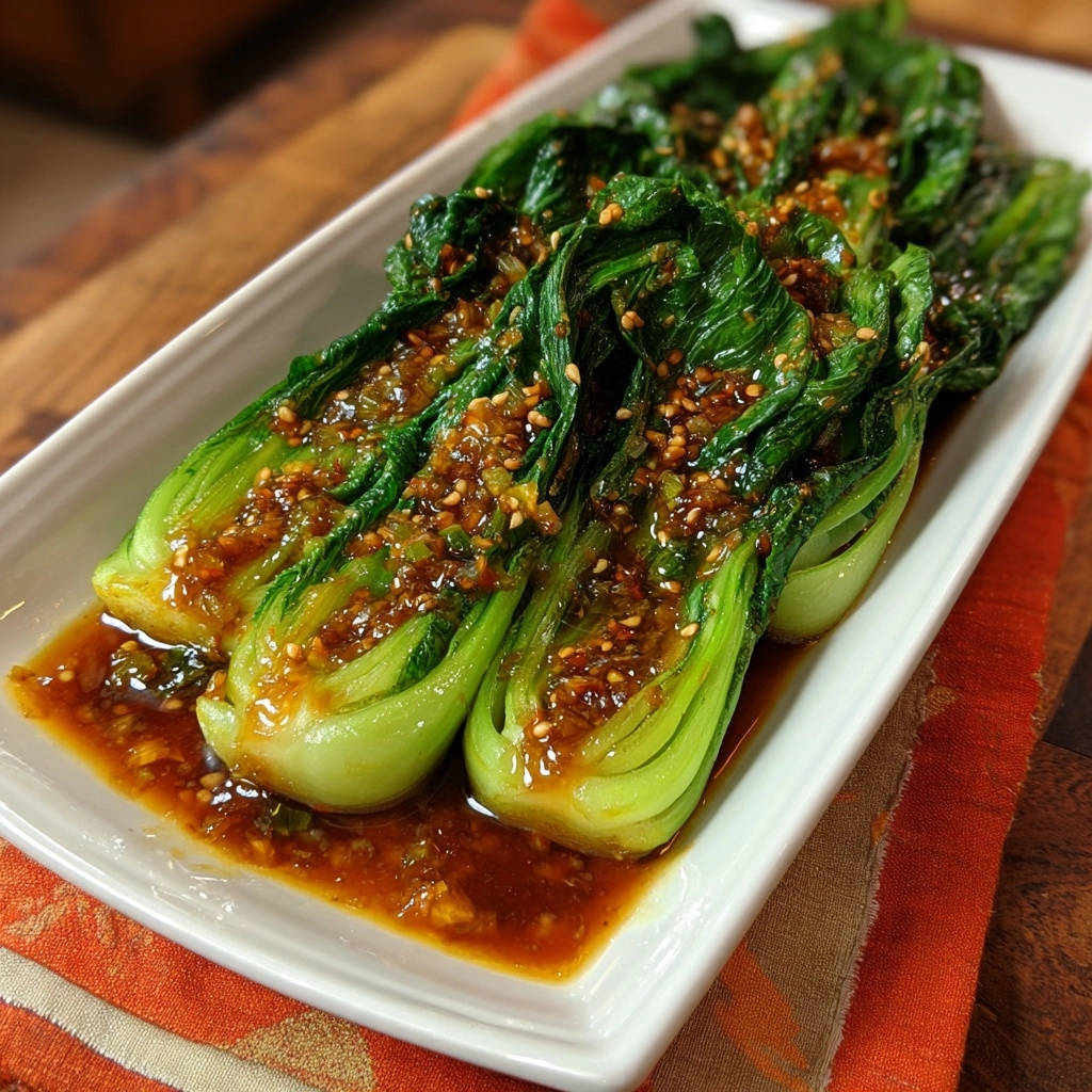 Asiatischer Bok Choy mit Knoblauch-Sesam-Soße