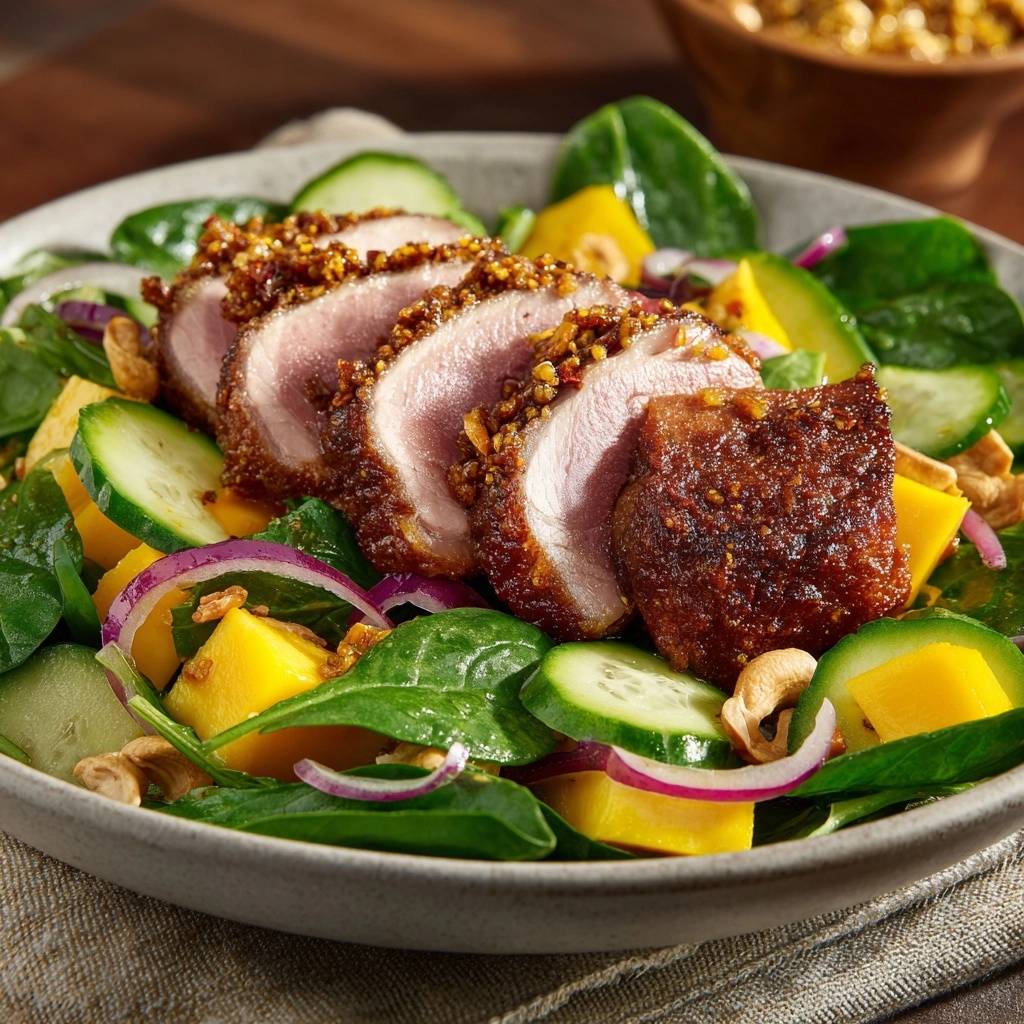 Stell dir vor, du beißt in eine Sesamkruste, die perfekt knusprig abbricht, während der Thunfisch innen rosa und saftig bleibt. Der Duft von geröstetem Sesam mischt sich mit der süßen Mango und knackiger Gurke. Dieser Asiatischer Thunfisch-Salat mit Mango & Cashews hat mich das erste Mal umgehauen, als ich den Trick mit der Kruste endlich geknackt hatte.