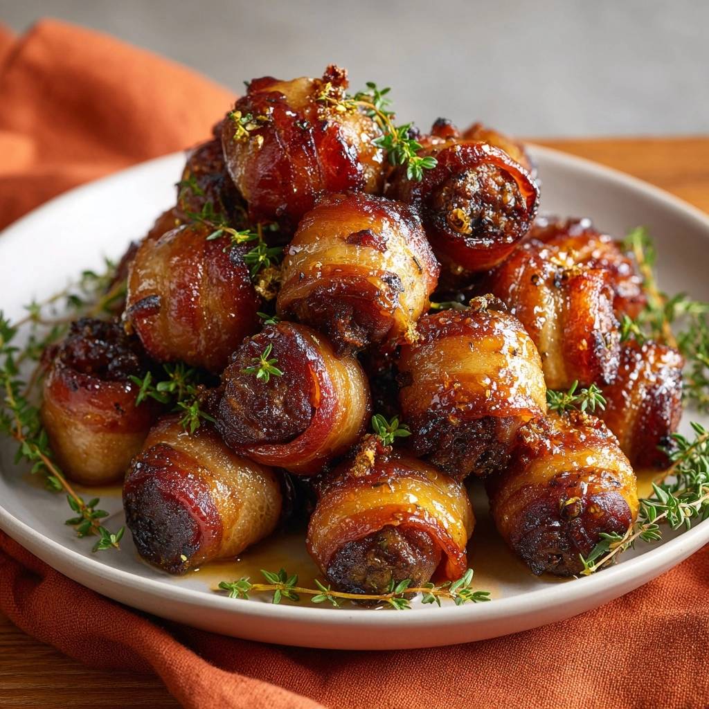 Stell dir vor, du beißt herzhaft zu: Das Bacon knuspert laut, gibt saftig nach und enthüllt eine cremig-süße Süßkartoffel, die im Mund zerfließt. Der Thymian-Glaze glänzt drumherum, süß-würzig und karamellisiert. Ich hab das schon hundertmal gekocht, und jedes Mal fliegen die Dinger weg.