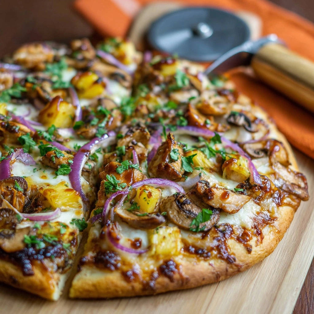 Diese BBQ Chicken & Ananas Pizza ist mehr als nur ein Rezept – sie ist ein Versprechen für einen knusprigen Boden und eine Explosion der Aromen.