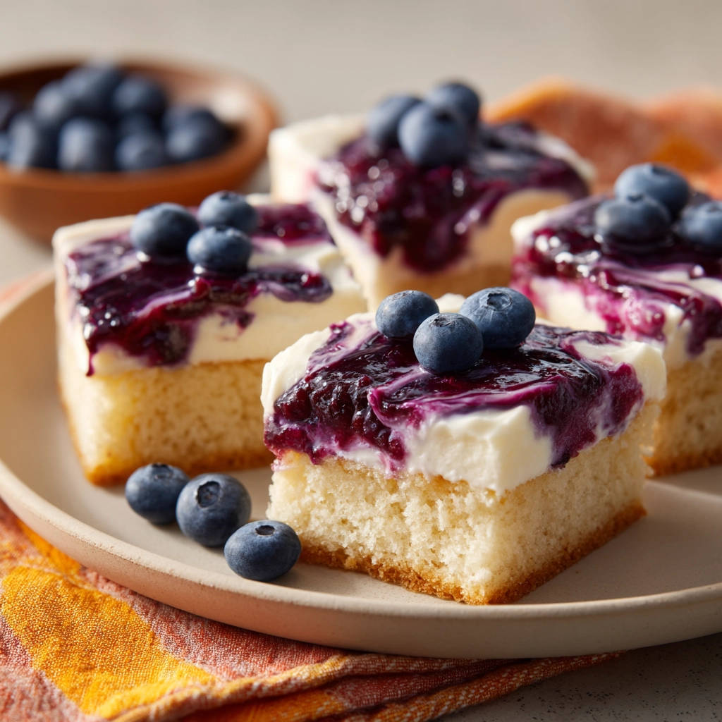 - Variationen: Du könntest dem Teig oder dem Frischkäse-Topping zusätzlich etwas Zitronenabrieb hinzufügen für noch mehr Frische. Statt Blaubeeren funktionieren auch Himbeeren, Erdbeeren (kleingeschnitten) oder gemischte Beeren.