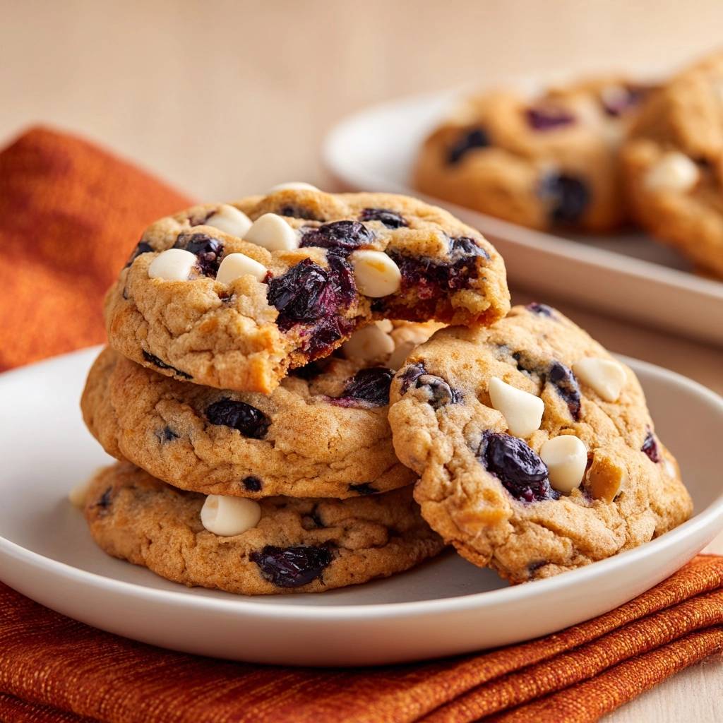 Diese Blaubeer-White-Chocolate-Nuss-Cookies verbinden alles: Fluffig außen durch perfekte Backzeit, chewy innen vom braunen Zucker. Der Gefriertrick hält Beeren saftig, ohne Matsch.