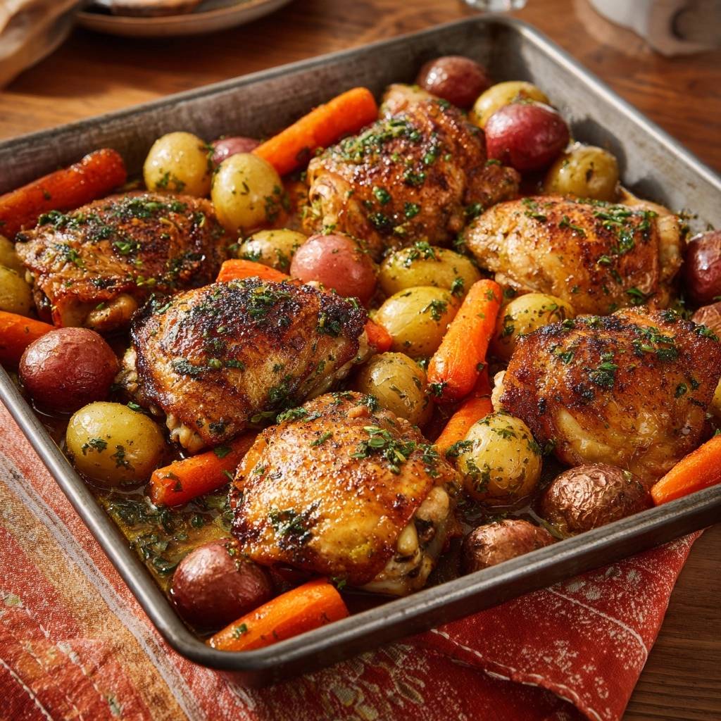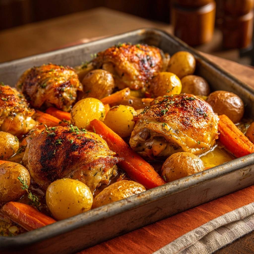 Blechhähnchen mit Kartoffeln und Karotten: Saftig & Knusprig