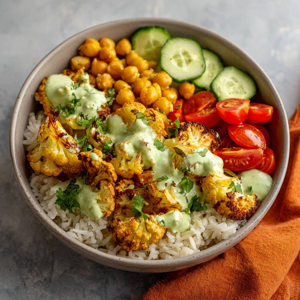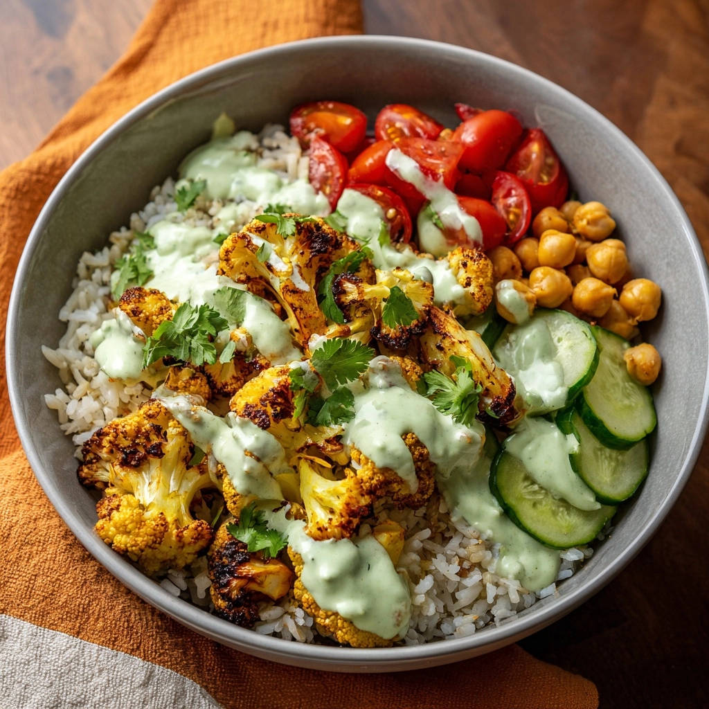 Reis dient hier als wunderbar sättigende und zugleich neutrale Basis, die die intensiven Aromen des knusprigen Blumenkohls und des Dressings perfekt ausbalanciert.
