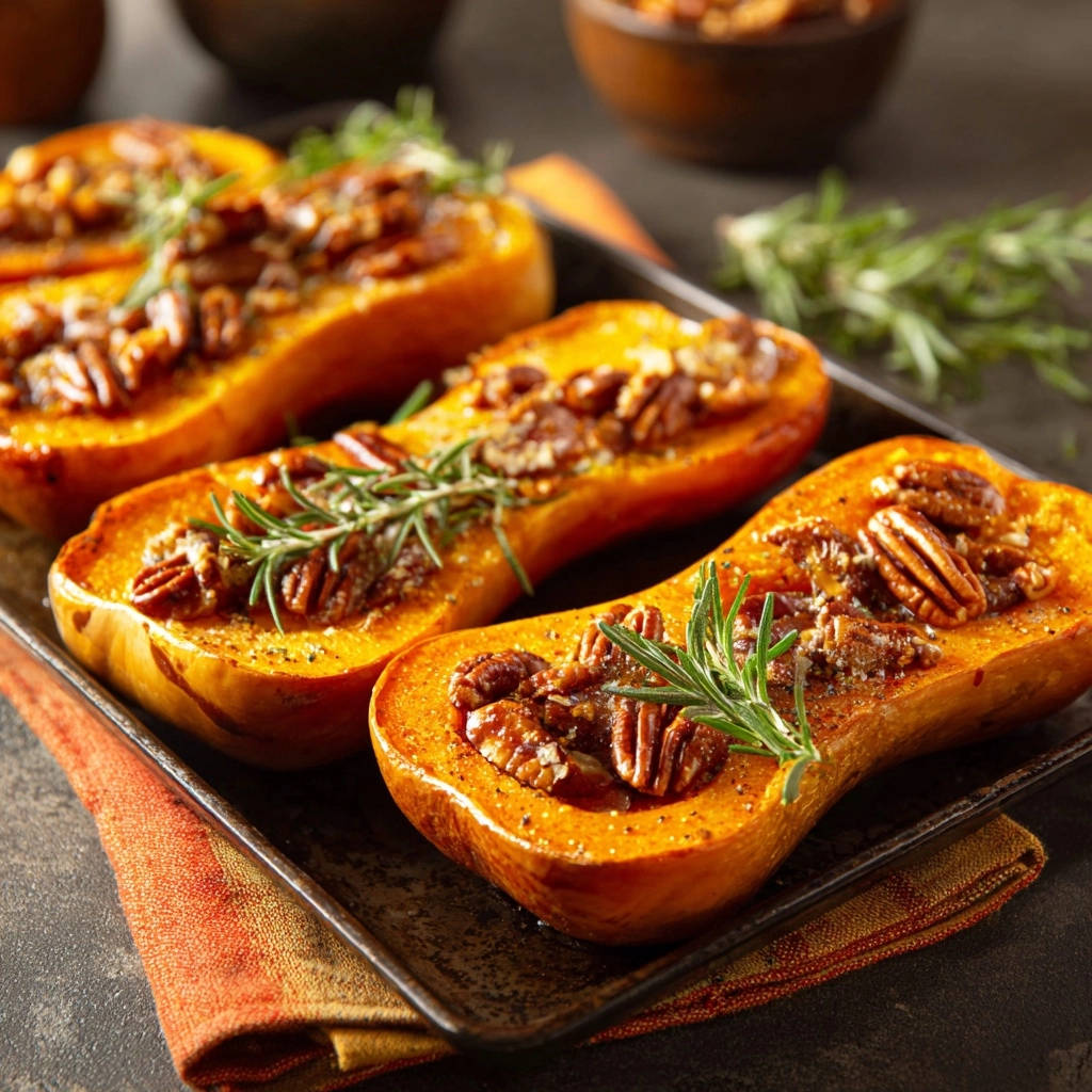 Ja, das Rezept ist von Natur aus vegan! Alle Zutaten – Butternut-Kürbis, Olivenöl, Salz, Pfeffer, Pekannüsse, Ahornsirup, brauner Zucker und Rosmarin – sind pflanzlich und passen perfekt zu einer veganen Ernährungsweise.
