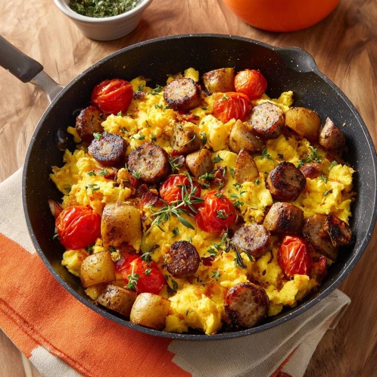 Weiterlesen Knusprige Kartoffel-Wurst-Pfanne mit Rührei – RezeptWeiter