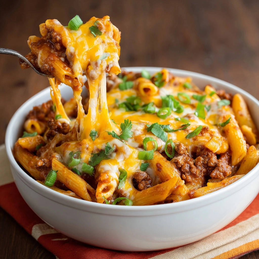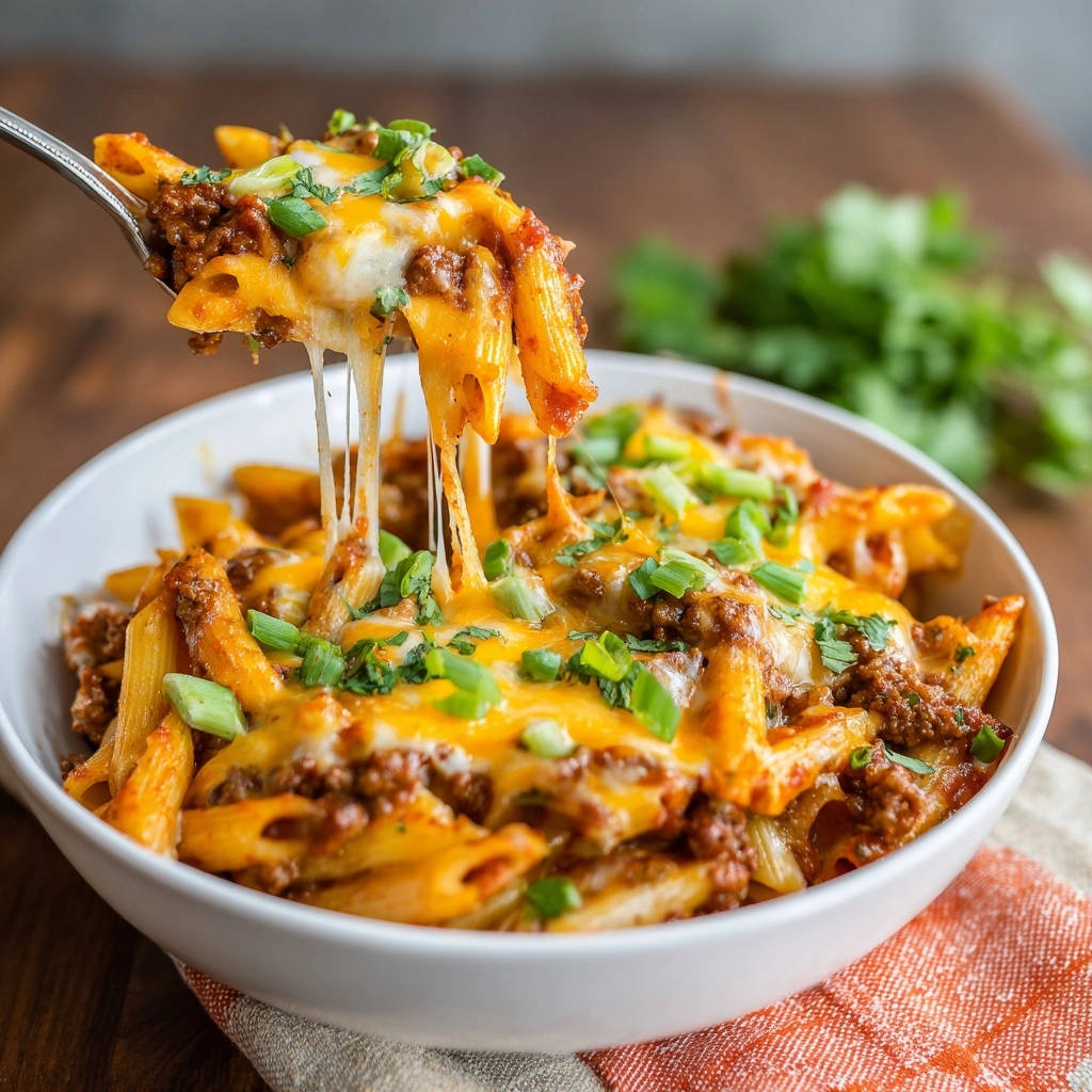 Serviert die Cheesy Beef Penne sofort in tiefen Schüsseln, solange sie noch heiß und der Käse wunderbar geschmolzen ist. Das ist der Moment, in dem die Fäden ziehen und der Genuss beginnt!