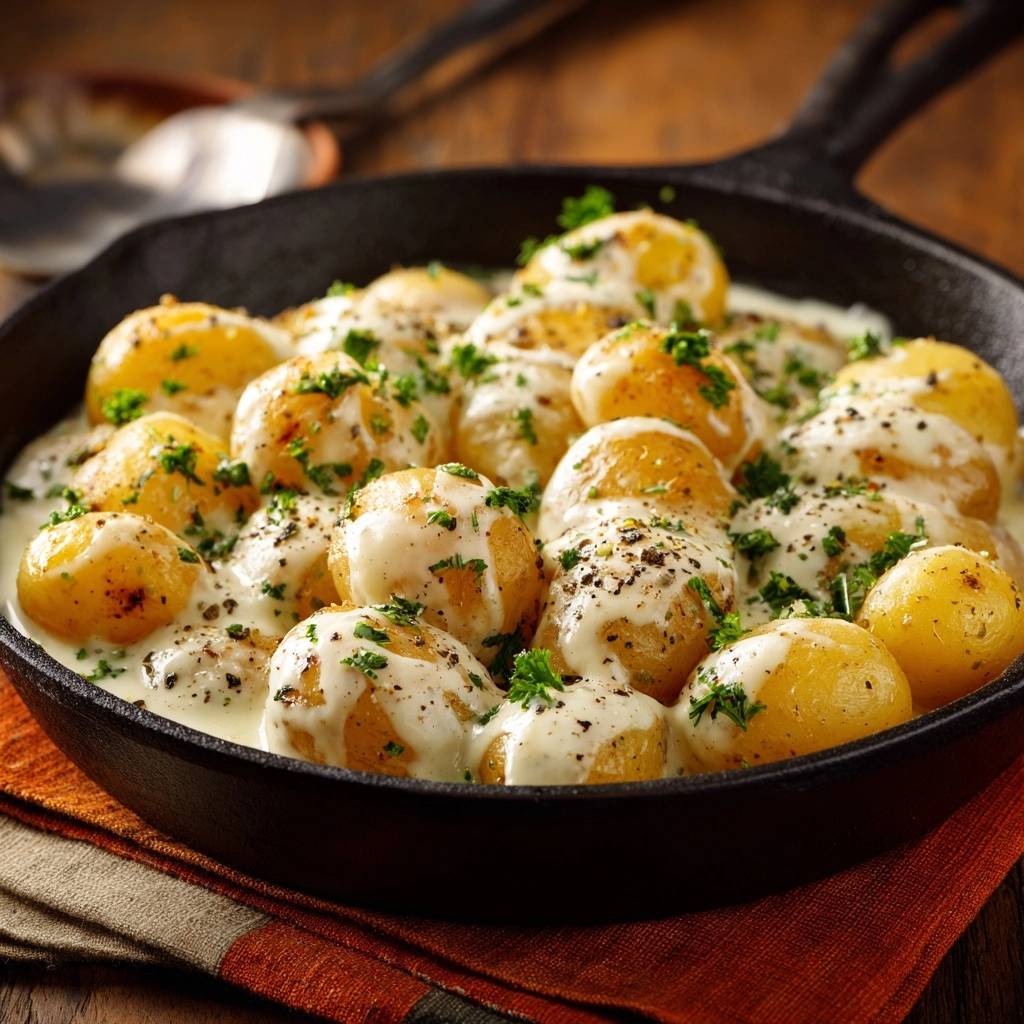 Stell dir vor, du beißt in eine cremige Babykartoffel aus der Pfanne. Draußen knusprig goldbraun, innen weich und saftig, umhüllt von einer reichhaltigen Sahnesauce, die perfekt an der Zunge schmilzt. Der Duft von frischer Butter und Petersilie steigt auf, und du fragst dich, warum du das nicht früher gemacht hast.