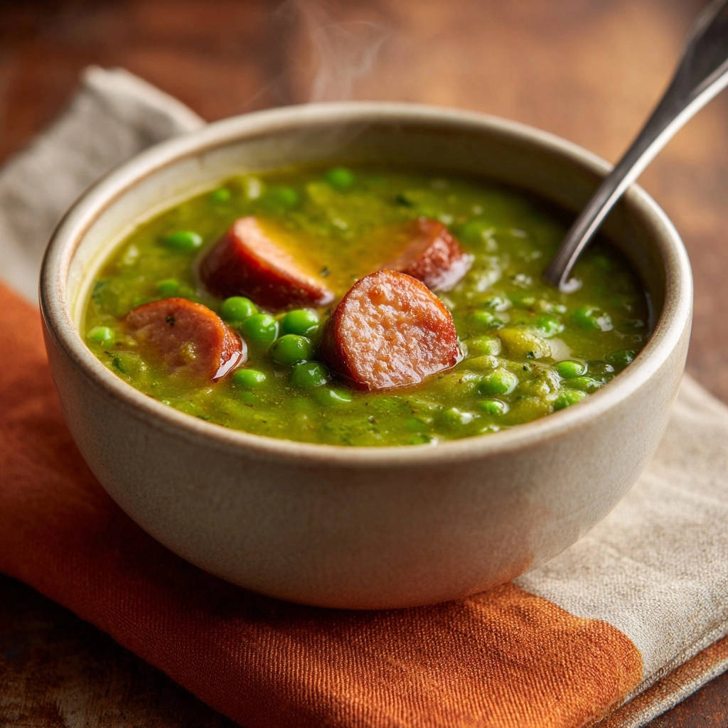 Diese Cremige & Frische Erbsensuppe mit herzhaften Würstchen ist weit mehr als nur eine einfache Suppe – sie ist ein kulinarisches Statement. Sie beweist eindrucksvoll, dass man keine Kompromisse eingehen muss, wenn es um Textur, Geschmack und Frische geht.