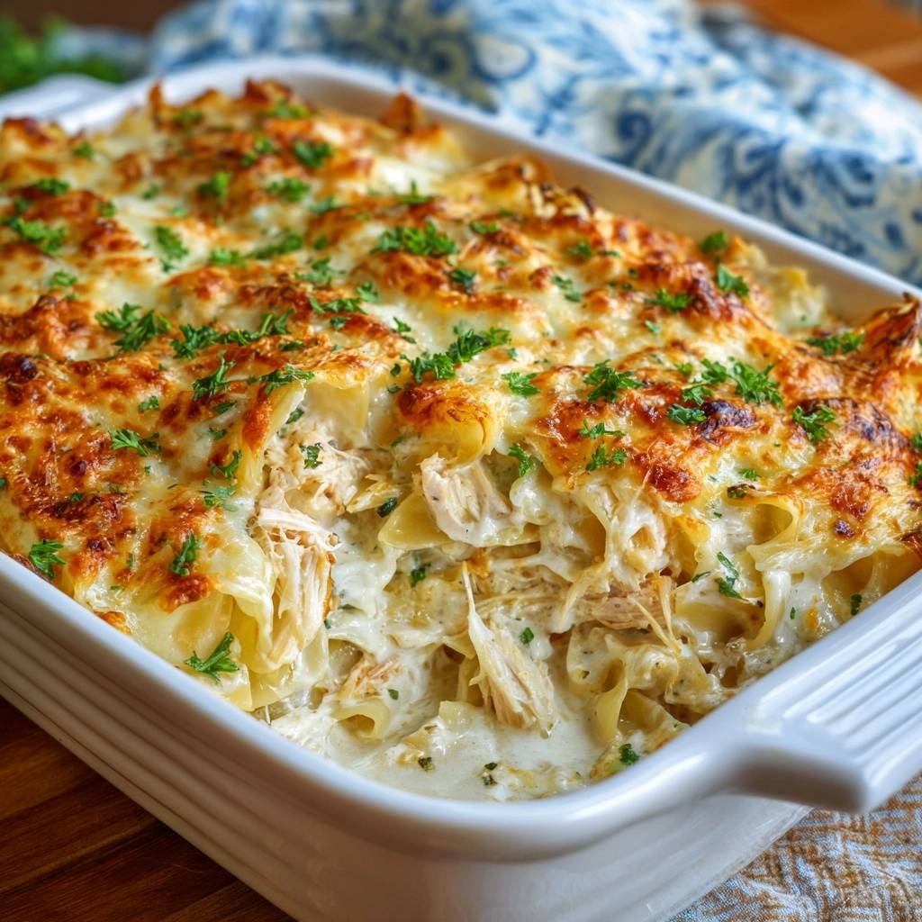 Cremige Hühnerlasagne
