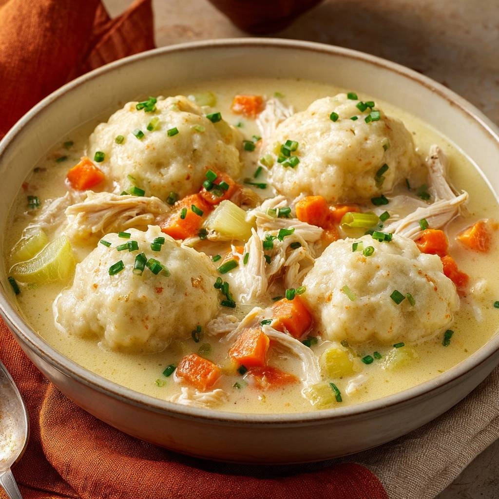 Cremige Hühnersuppe mit fluffigen Klößen – Rezept