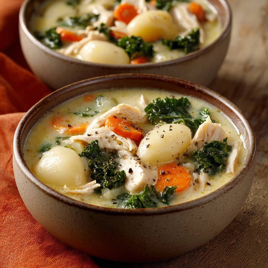 Cremige Hühnersuppe mit Kartoffeln, Karotten und Grünkohl