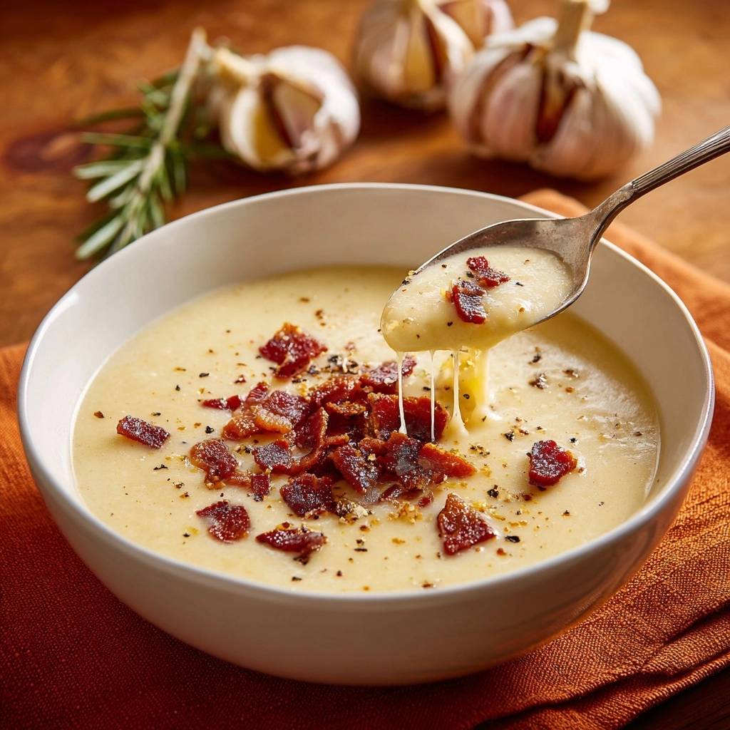 Cremige Kartoffel-Knoblauch-Suppe mit Speck – Rezept