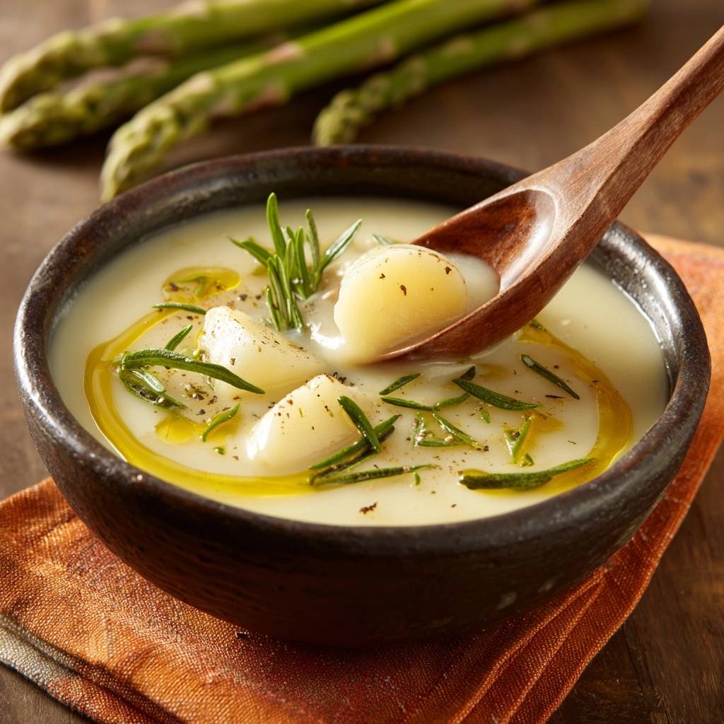 Stell dir vor, du löffelst die erste cremige Ladung dieser Kartoffel-Spargel-Suppe. Der Rosmarin duftet intensiv, die Kartoffeln sind weich, aber mit knackigem Biss, und der frische Spargel daneben knirscht so herrlich.