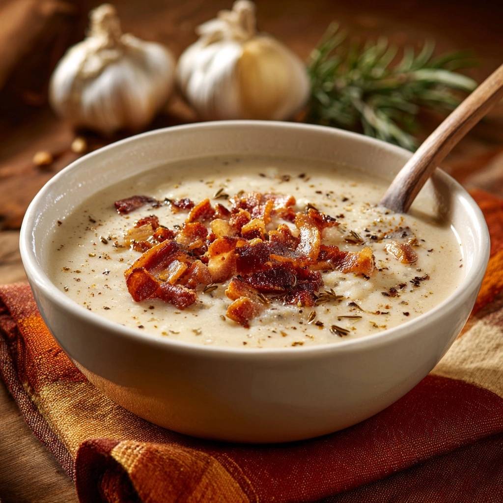 Cremige Knoblauch-Kartoffelsuppe mit Bacon – Ohne Bitterkeit!
