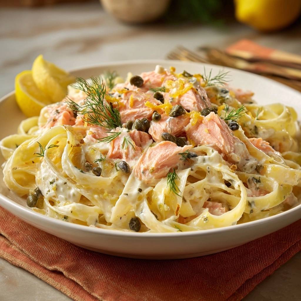 Cremige Lachs-Tagliatelle mit Zitrone und Kapern