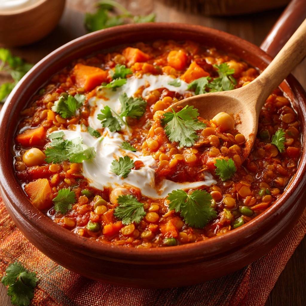Diese orientalisch inspirierte Variante ist vegan, wenn du pflanzlichen Joghurt nimmst. Sie sättigt stundenlang, dank Protein aus Linsen und Kichererbsen. Süßkartoffeln bringen Süße und Vitamine rein. Ideal für kalte Abende, wenn du was Herzhaftes brauchst.
