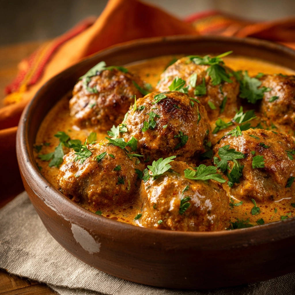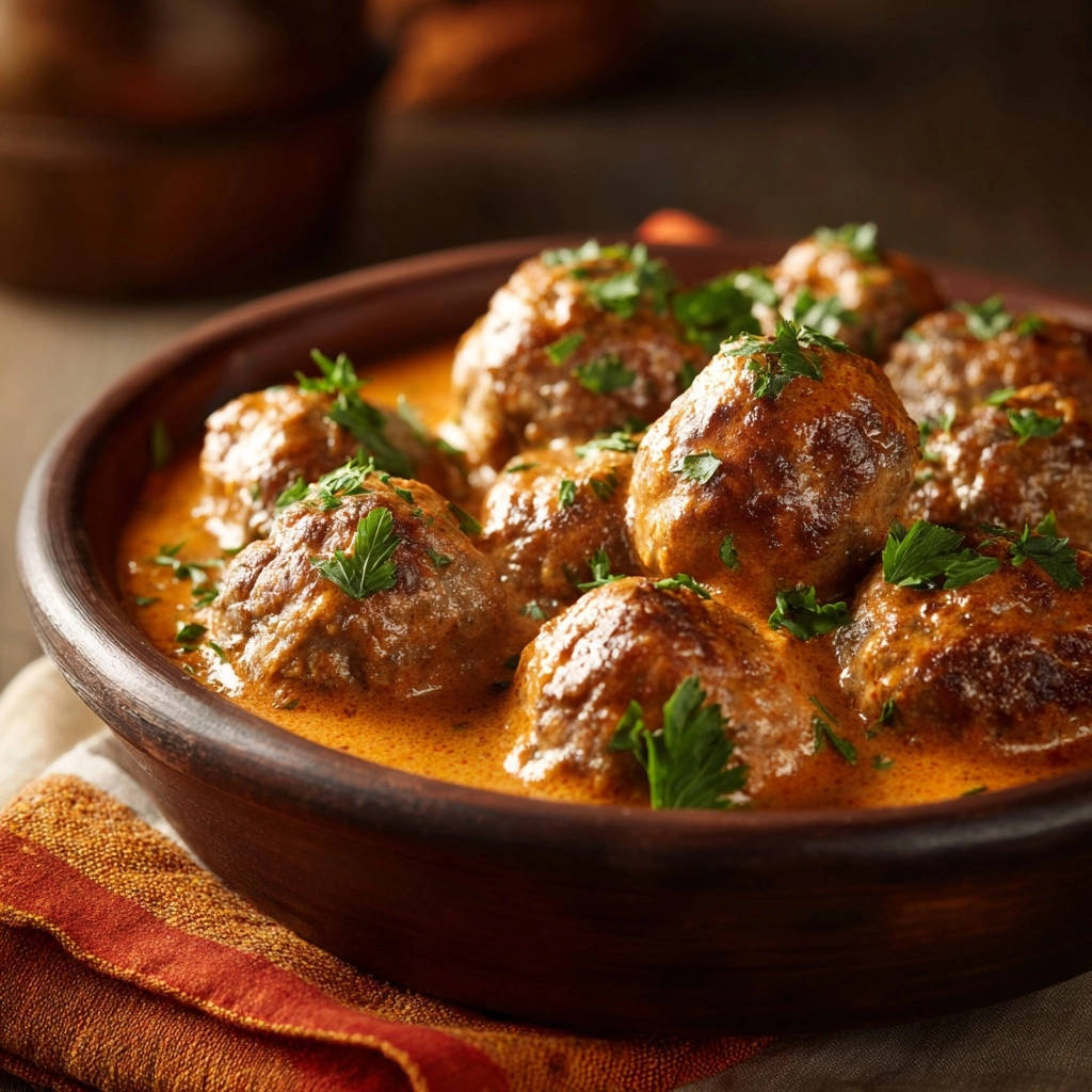 Diese Soße ist der Star des Tellers. Ihre Cremigkeit und der intensive Paprika-Geschmack umhüllen die Hackbällchen und machen jeden Bissen zu einem Genuss.