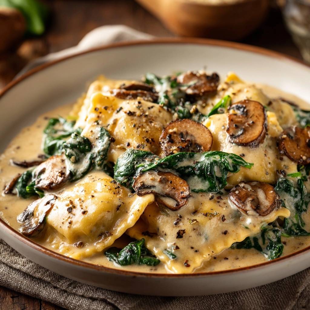 Cremige Ravioli mit Pilzen und Spinat (Keine wässrige Soße mehr)