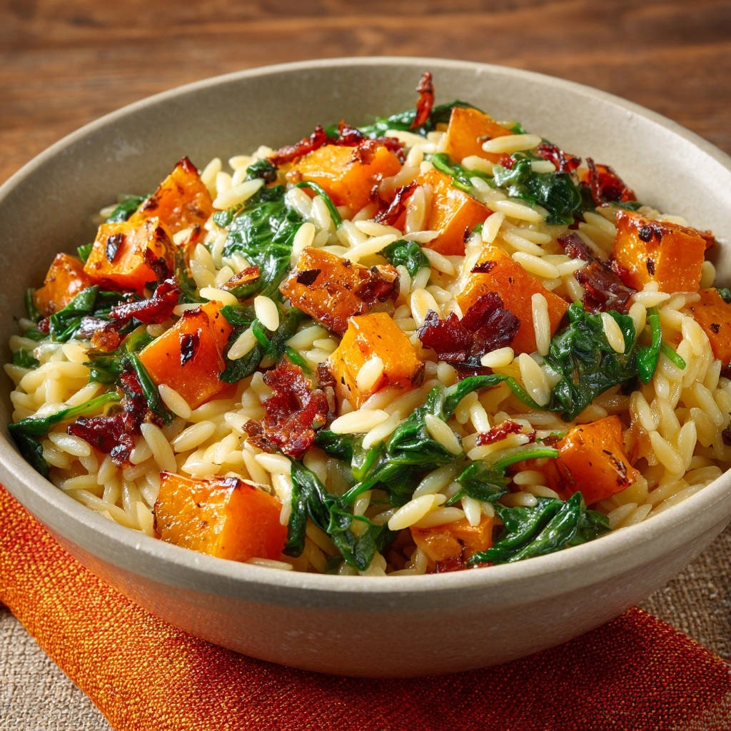 Cremige Risoni mit geröstetem Kürbis, Spinat und Knusper-Bacon: Dein Geheimnis für perfekte Konsistenz