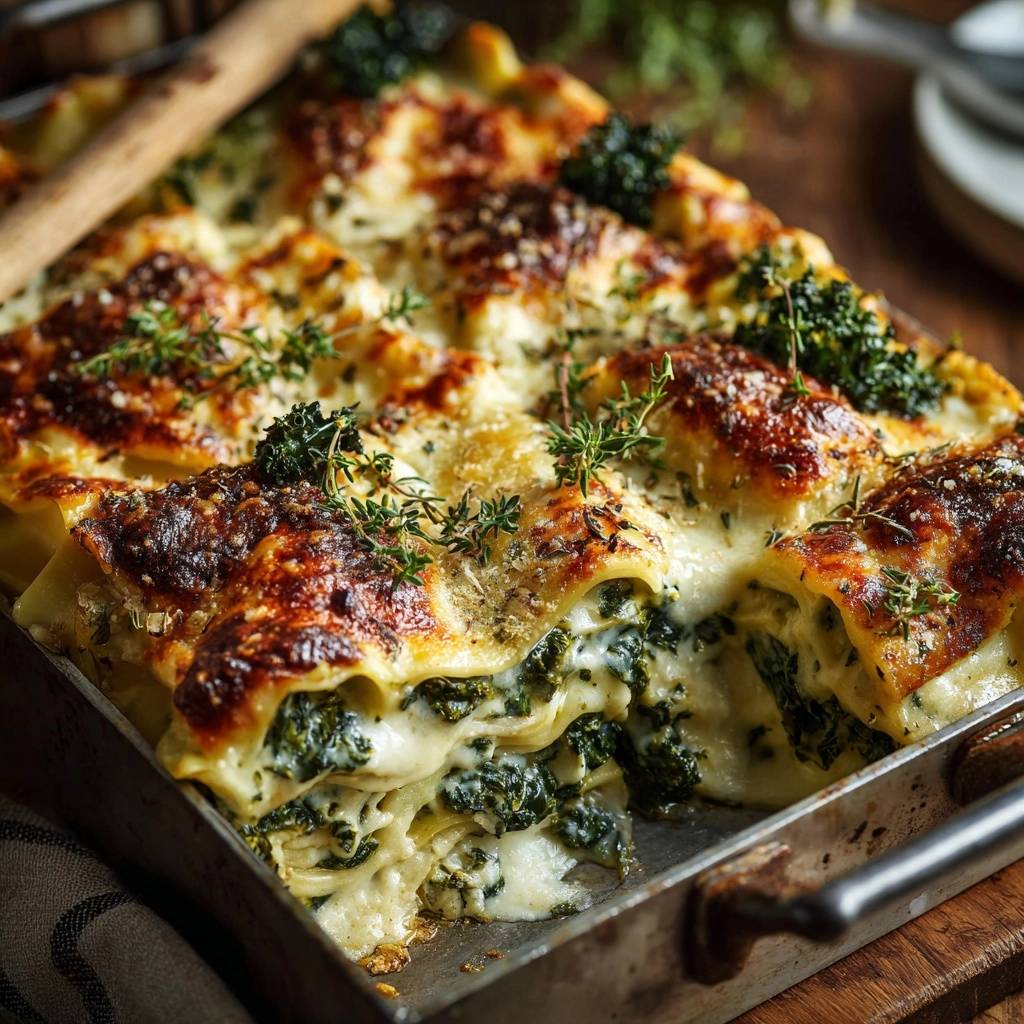 Stell dir vor, du schneidest in deine cremige Spinat-Lasagne, und statt einer suppigen Pfütze kommt eine perfekte, saftige Schicht zum Vorschein. Der Duft von frischem Thymian und geschmolzenem Käse erfüllt die Küche, der erste Bissen schmilzt cremig auf der Zunge.