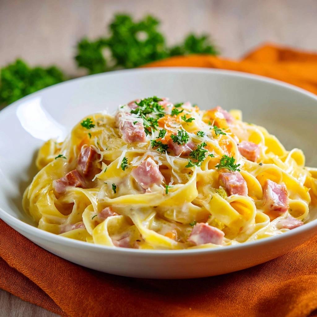 Stell dir vor, du twirrst die Gabel in diese cremigen Tagliatelle mit Schinken, der erste Bissen schmilzt auf der Zunge. Die Sauce umhüllt jede Nudel seidig, der Schinken knackig, frische Petersilie bringt Frische rein. Aber du kennst das: Oft klumpt die Käsesauce, wird zu einer matschigen Pampe. Das nervt total, besonders wenn die Familie wartet.