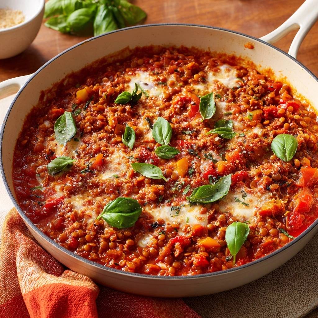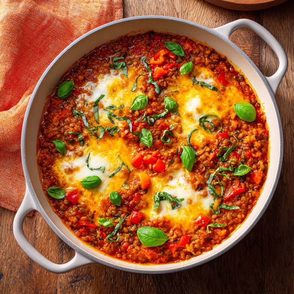 Stell dir vor, du beißt in eine cremige Tomaten-Linsen-Pfanne mit Paprika und Mozzarella, und die Linsen sind knackig, nicht matschig. Der Duft von frischem Basilikum steigt auf, der Käse blubbert goldbraun. Ich hab das früher oft vermasselt, rote Linsen wurden immer zu Brei, fade und unappetitlich.