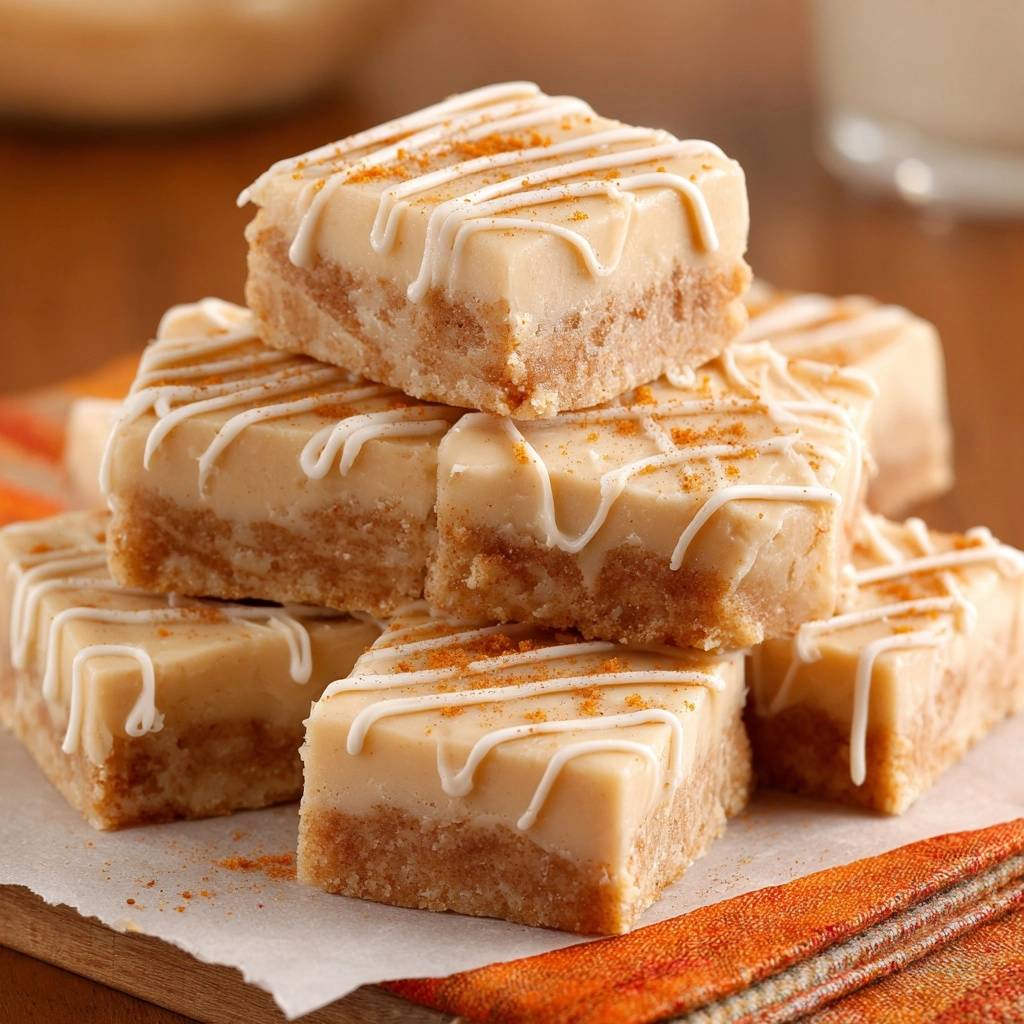 - Für die Glasur Puderzucker, Milch und Zimt glatt rühren. Über die gekühlten Riegel träufeln, mit Zimt bestreuen und in Quadrate schneiden. Fertig – knuspriger Boden, cremige Textur, unwiderstehlich!