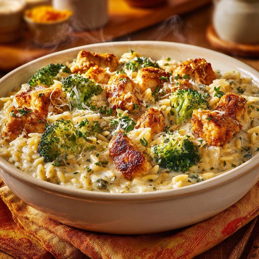 „`Cremiger Hähnchen-Brokkoli-Orzo-Auflauf (Keine wässrige Soße mehr)