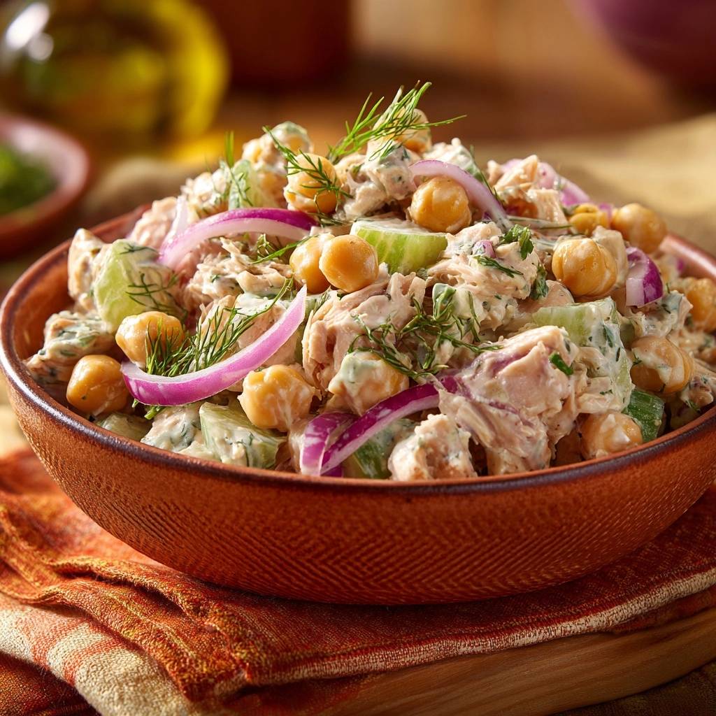 Cremiger Hähnchen-Kichererbsen-Salat mit Dill