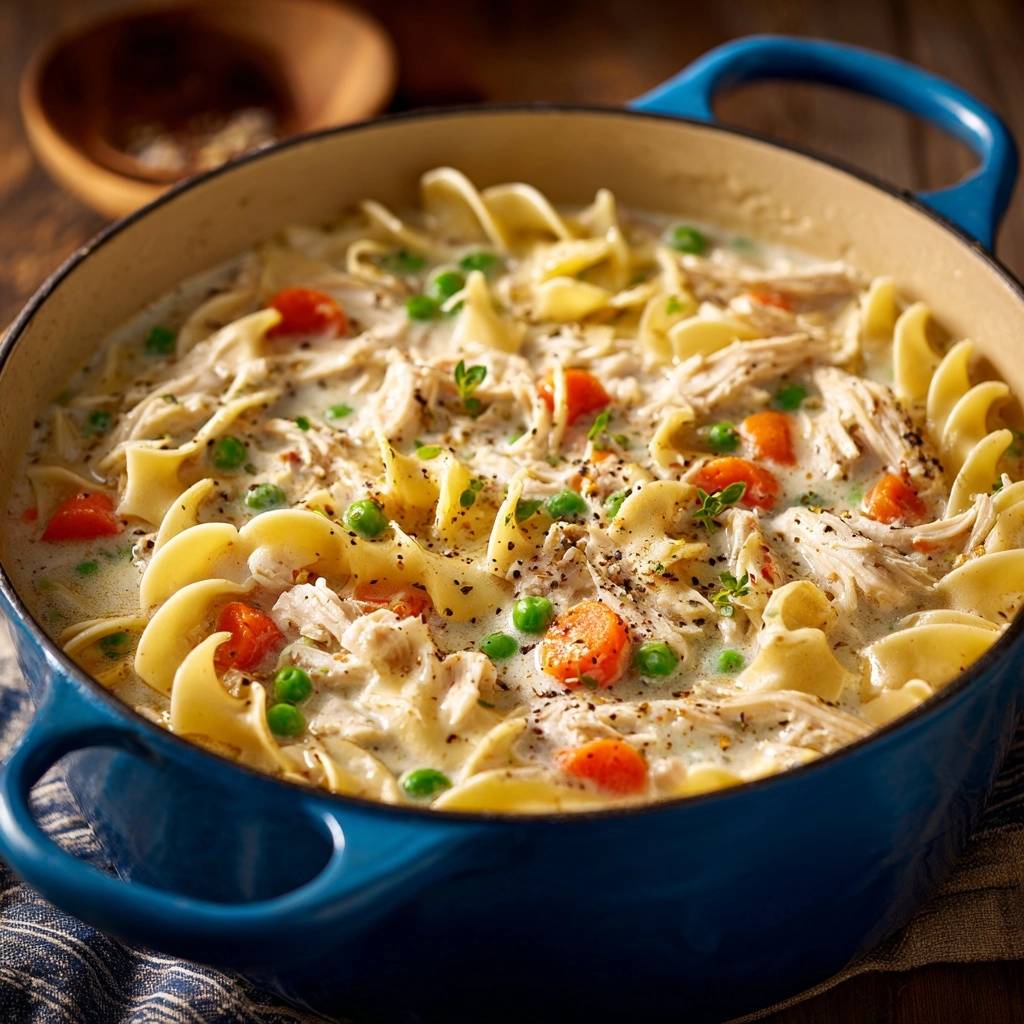 Warum dieser Hähnchen-Nudeltopf so besonders cremig wird