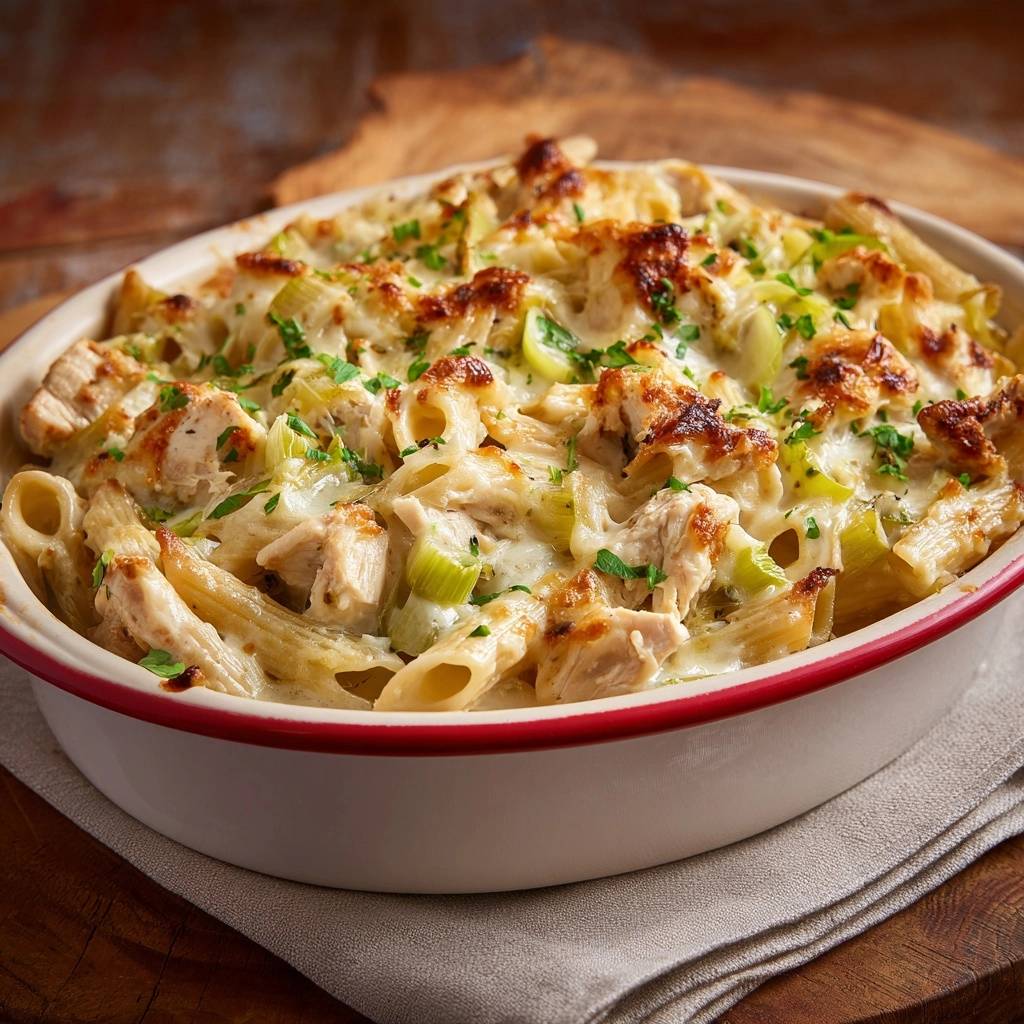 Cremiger Hähnchen-Penne-Auflauf