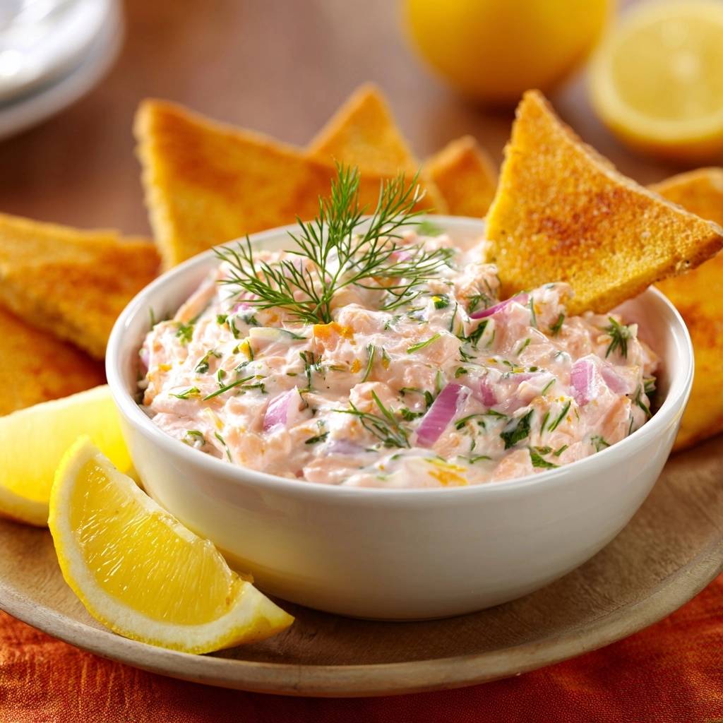 Der cremige Lachs-Dill-Dip ist proteinreich dank Lachs, Omega-3 bonus.