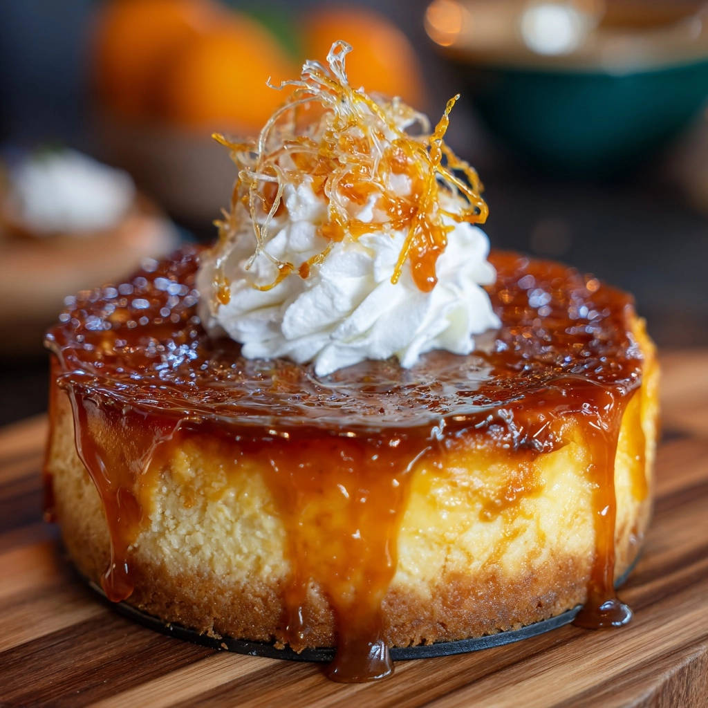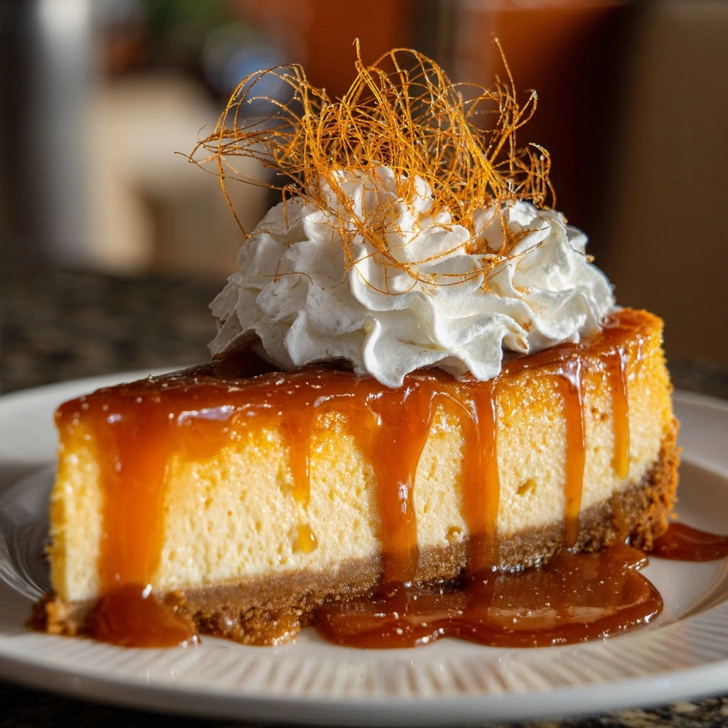 Das hausgemachte Karamell ist ein Spielplatz für Aromen, und die filigranen Fäden verleihen deinem Cremiger New York Cheesecake eine professionelle Optik.