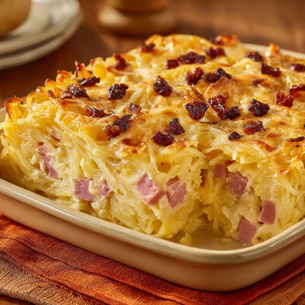 Cremiger Nudelauflauf mit Schinken