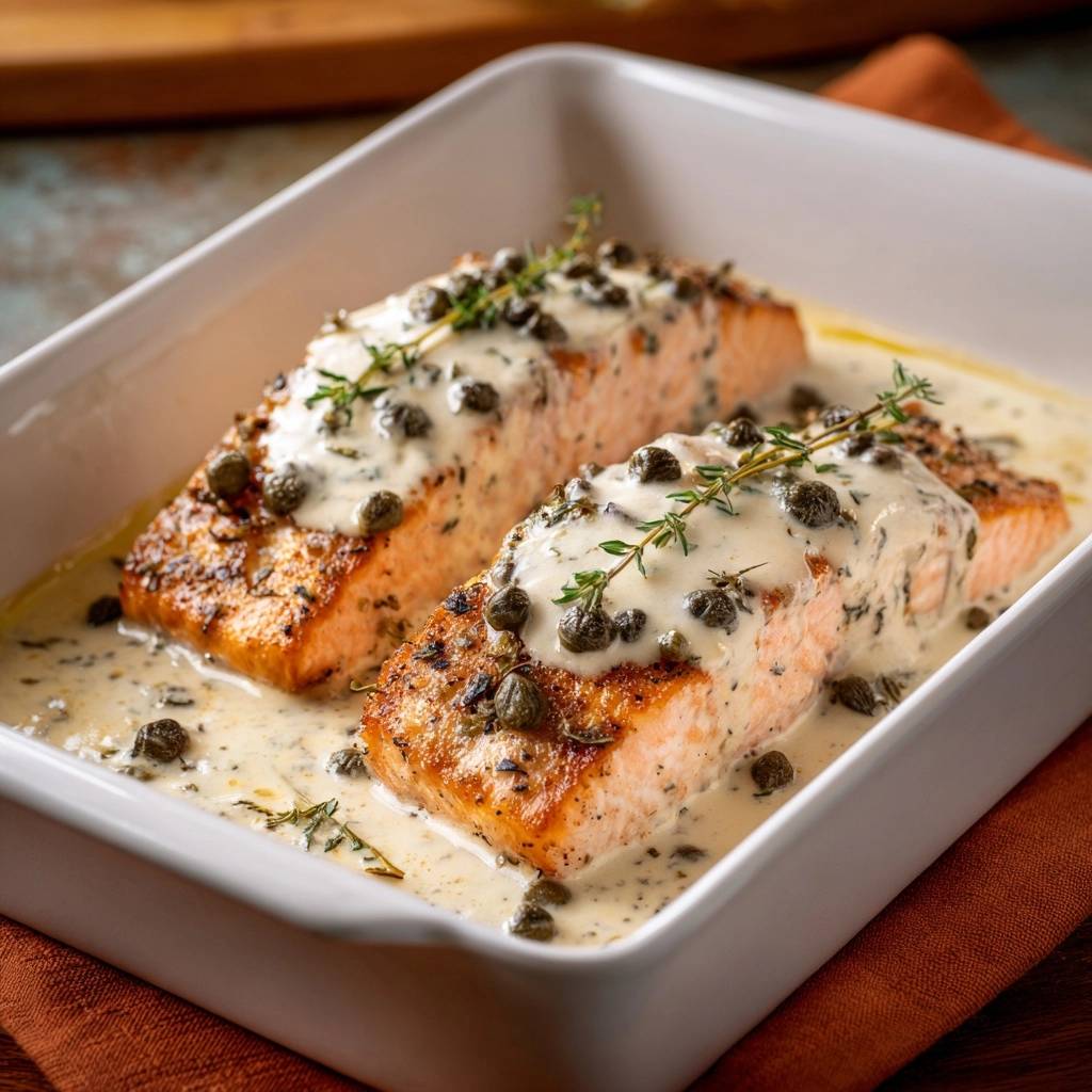 Cremiger Ofenlachs mit Kapern und Thymian Rezept
