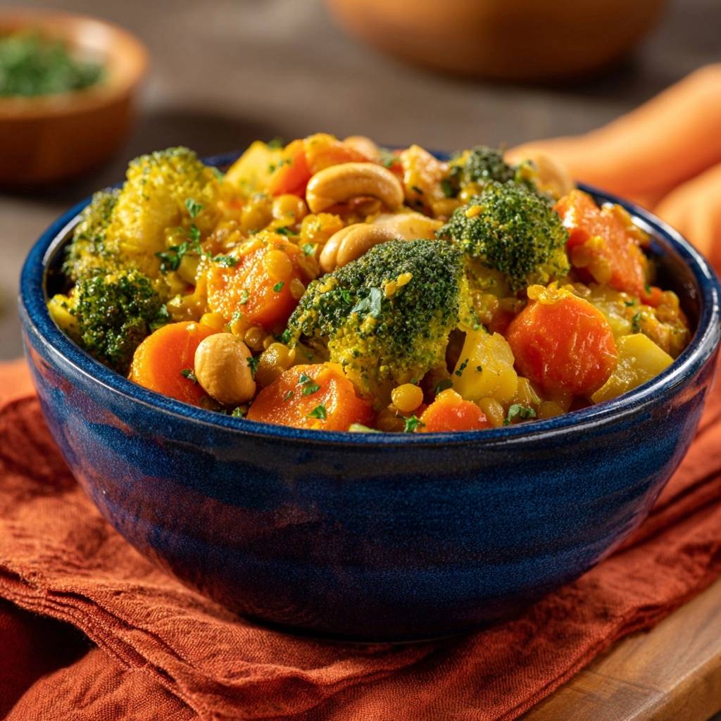 Stell dir vor, du löffelst das erste Mal aus deiner Schale. Die Linsen umhüllen cremig die Zunge, während knackige Brokkoli-Röschen knacken. Der Duft von Kurkuma und Kreuzkümmel zieht durch die Küche, Ingwer gibt Schärfe, Cashews knusprigen Biss. Ich hab das so oft gekocht, weil Brokkoli sonst immer matschig wurde. Das hat mich genervt.