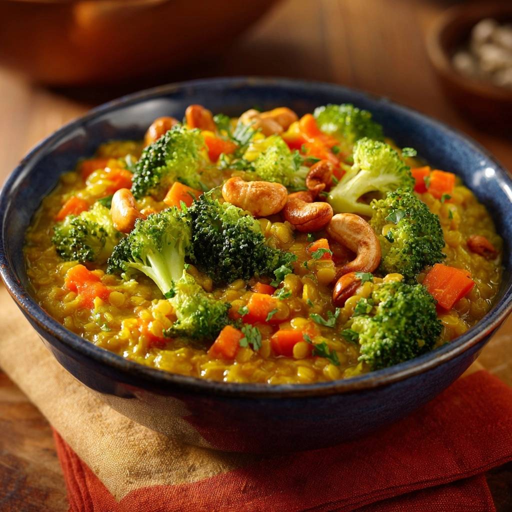 Cremiges Brokkoli-Linsen-Dal mit Cashews