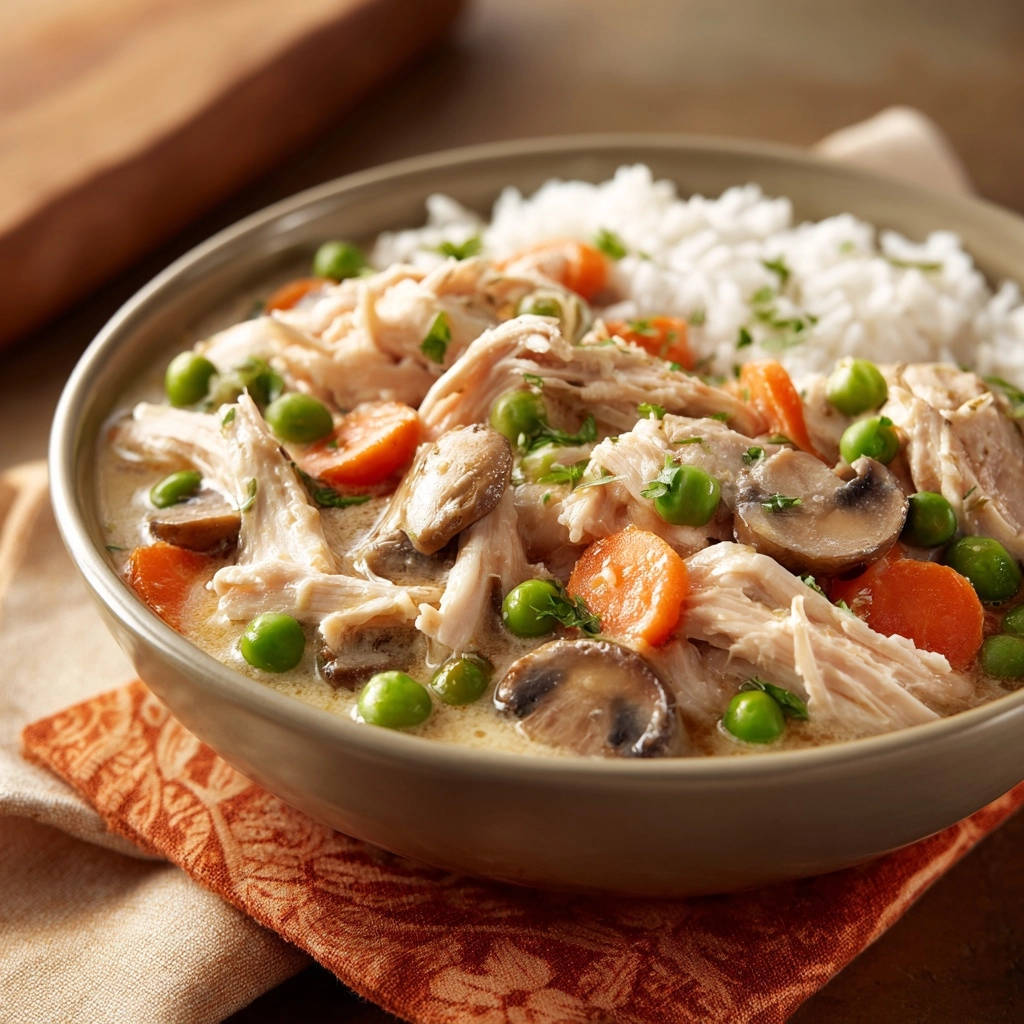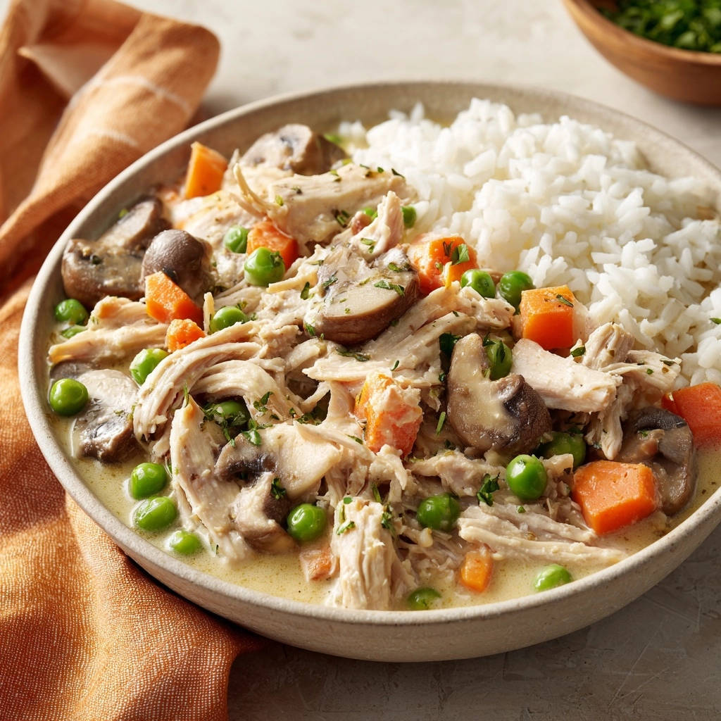 Cremiges Hähnchen-Frikassee mit Reis: Perfekt saftig & einfach