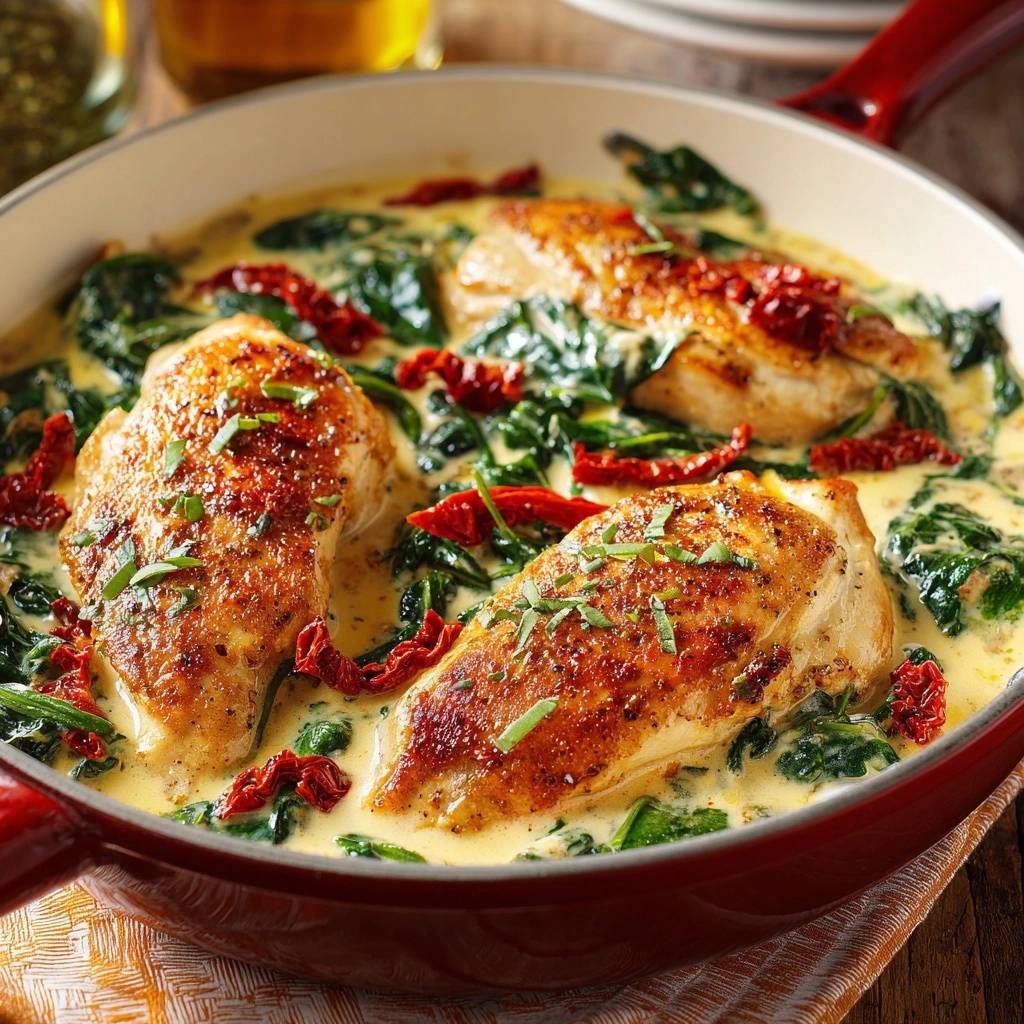 Cremiges Hähnchen mit Spinat & Sonnentomaten – Rezept