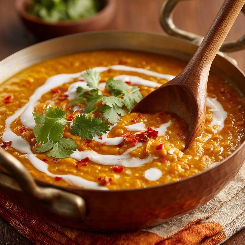 Das hier ist mein Go-to-Rezept aus unzähligen Tests mit traditionellen Methoden. Gelbe Spaltlinsen quellen perfekt auf, Gewürze entfalten ihr Aroma durch sanftes Anrösten. Es ist vegan, nährstoffreich und in unter einer Stunde fertig. Ideal für kalte Abende, wenn du was Warmes und Tröstliches brauchst.