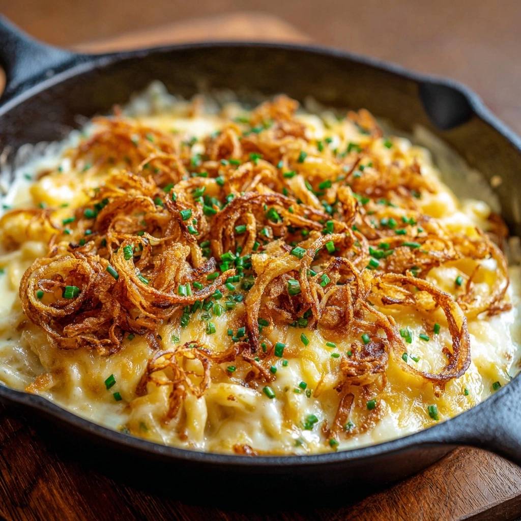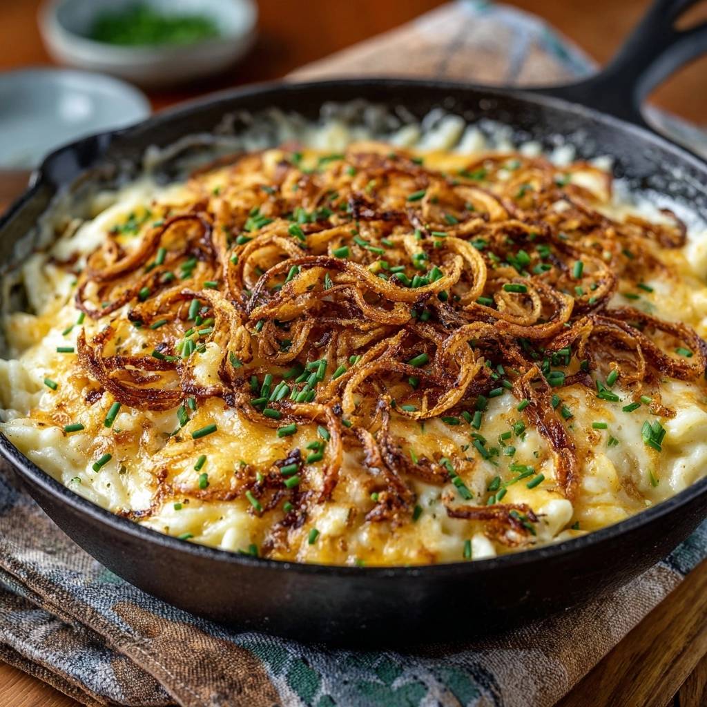 Stell dir vor, du beißt in diese cremige Käsekruste, die unter den Zähnen knackt, und darunter wartet pure Seide aus Nudeln und Sauce. Der Duft von goldbraun gebackenen Zwiebeln mischt sich mit dem herzhaften Käse, und alles schmilzt auf der Zunge. Ich hab das letztens für die Familie gemacht, und die Teller waren leer, bevor ich blinzeln konnte.