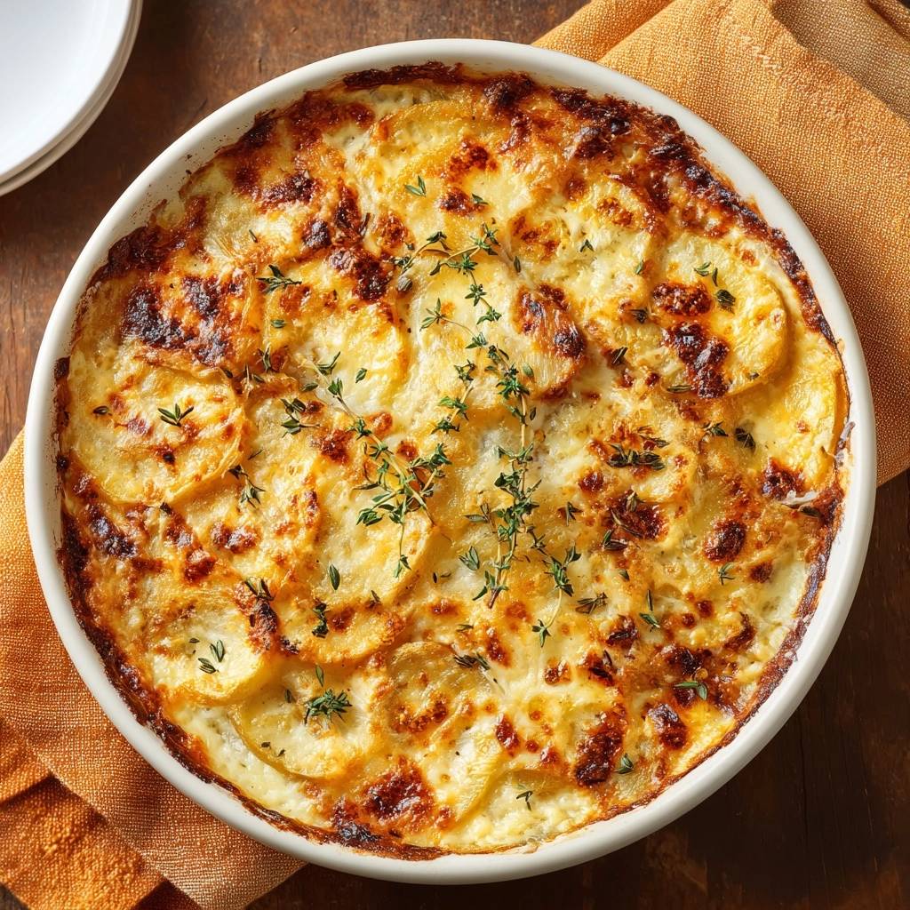Der erste Bissen schmilzt auf der Zunge. Cremig, mit einer goldbraunen Kruste, die knackt, und diesem herzhaften Thymian-Duft, der die ganze Küche erfüllt. Du spürst sofort, warum dieses cremige Kartoffel-Thymian-Gratin zur Lieblingsspeise wird.