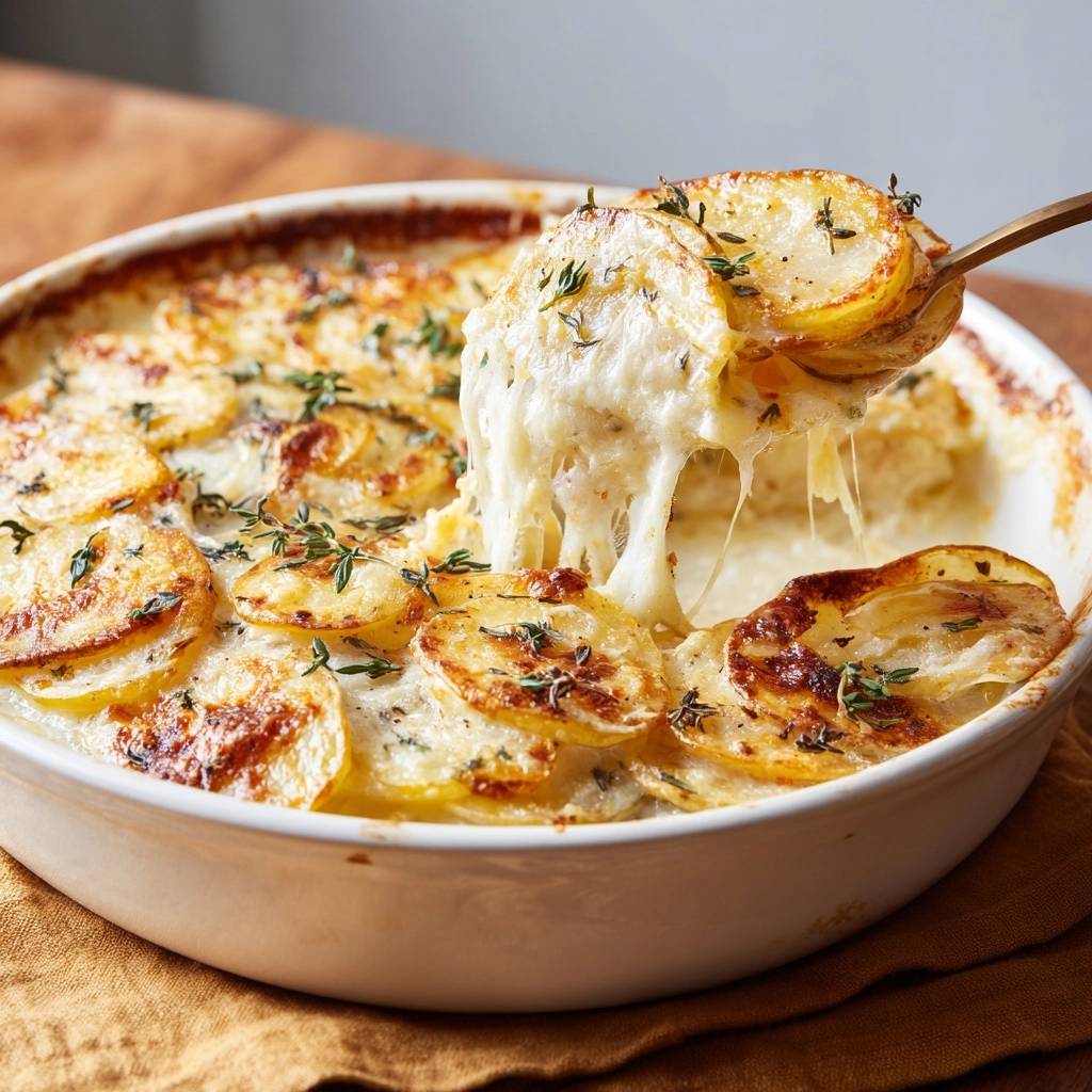 Stell dir vor, du schneidest die erste Schicht auf: goldbraune Kruste bricht ein, darunter schmilzt cremige Sahne mit Thymian um zarte Kartoffelscheiben. Kein Tropfen Wasser, nur pure Seide im Mund. Der Duft von frischem Thymian und Muskat zieht durch die Küche, und jeder Bissen zieht Käsefäden.