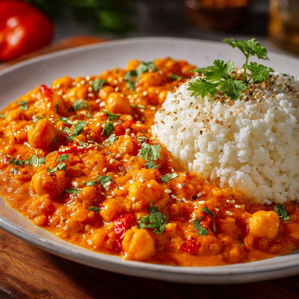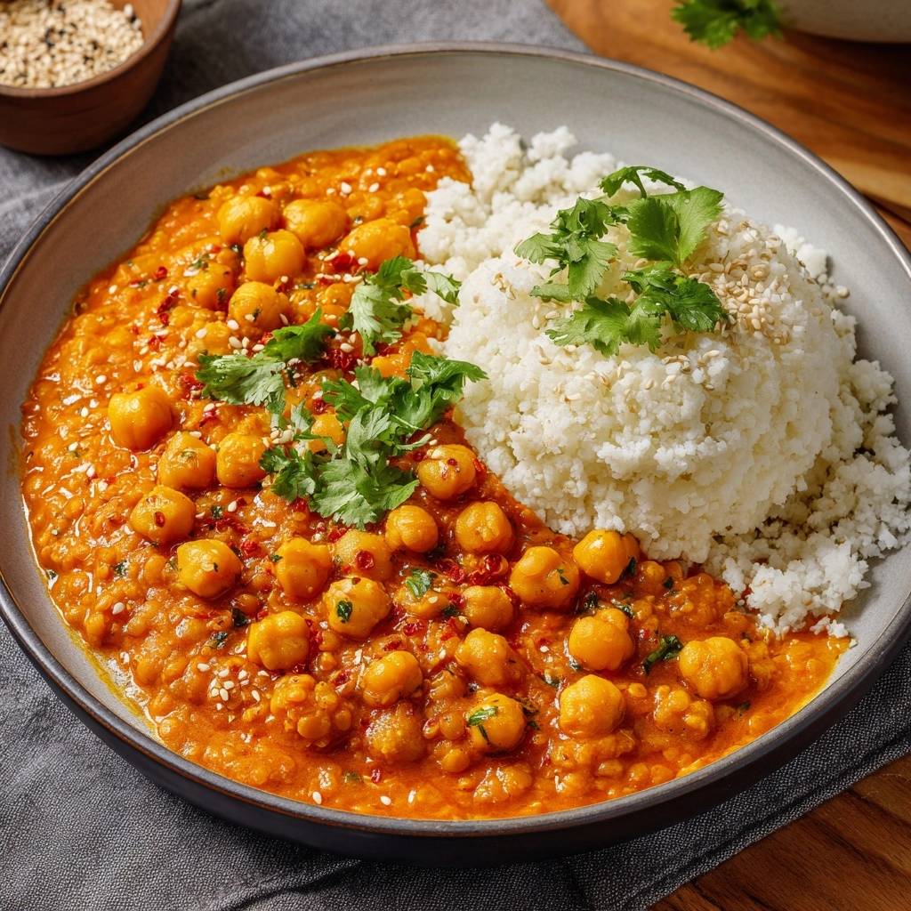 Cremiges Kichererbsen-Curry mit Blumenkohlreis