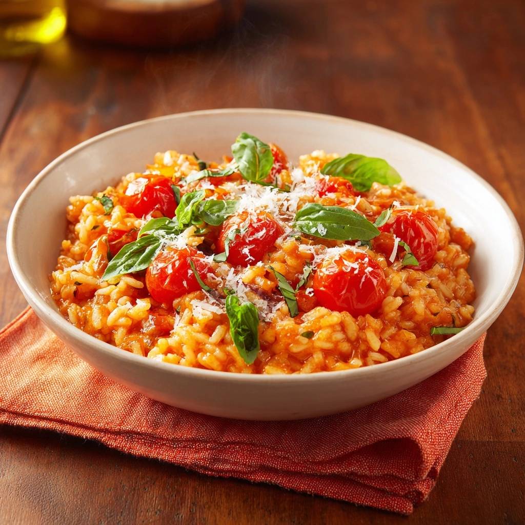 Stell dir vor, du nimmst den ersten Löffel dieses Risottos: sonnige Tomaten explodieren im Mund, cremig-samtig umhüllt der Reis alles, frisches Basilikum haucht Duft dazu. Ich hab so viele Risottos vermatscht, bis ich den Trick mit der Mantecatura kapiert hab. Das kalte Öl und der Parmesan portionsweise reingerührt, direkt vom Herd – das bindet die Stärke perfekt.