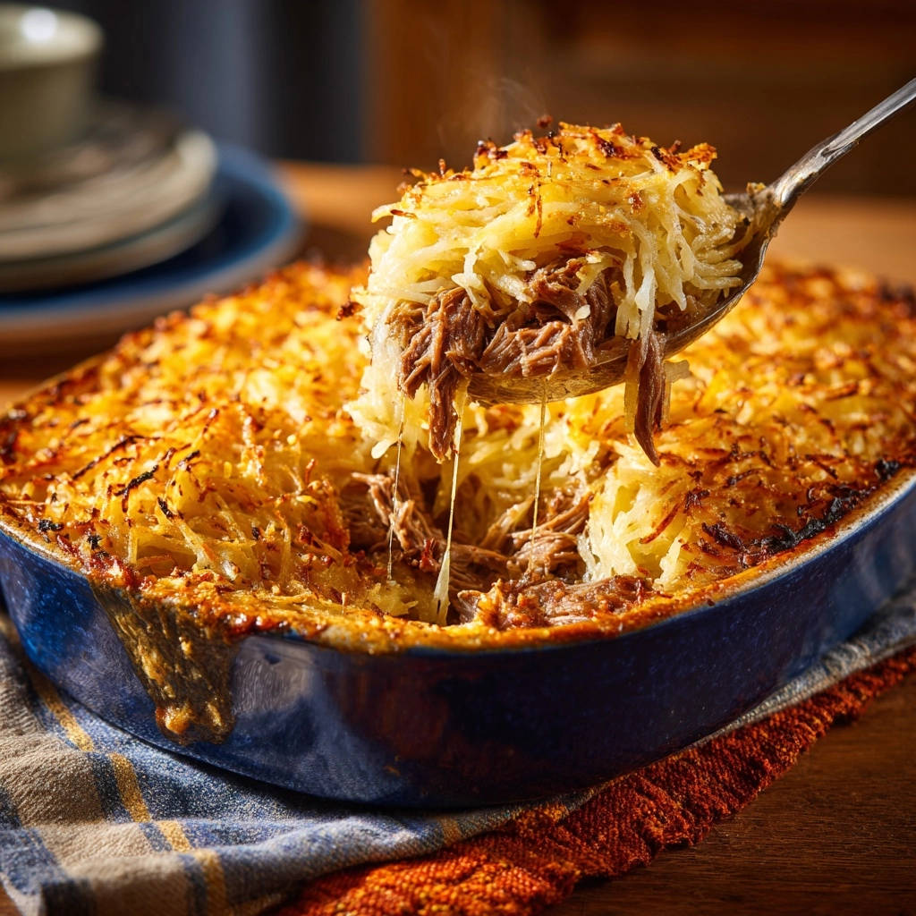 Dieser Gratin ist der Beweis, dass Reste nicht langweilig sein müssen. Er verwandelt Ihren übrig gebliebenen Sonntagsbraten oder Pulled Beef in ein völlig neues, aufregendes Hauptgericht.